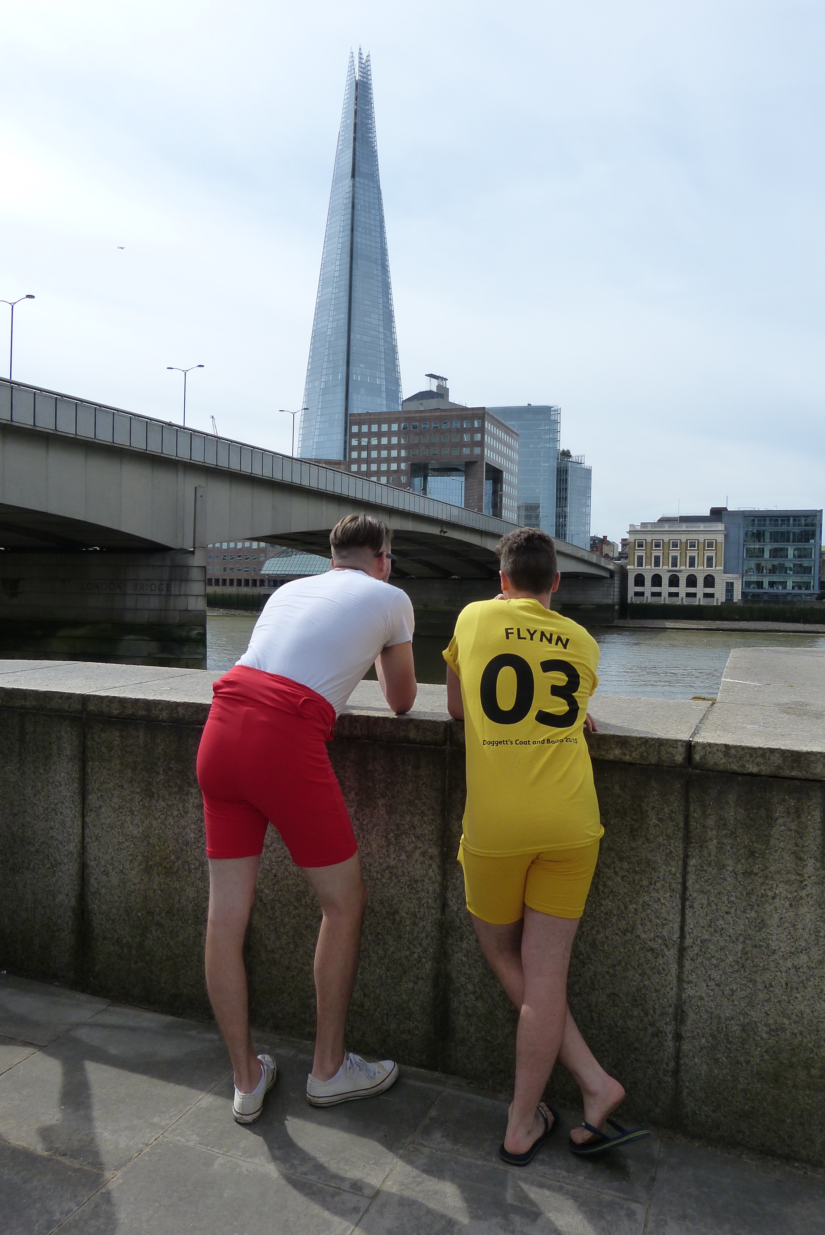 I followed the 301st Doggett’s Coat and Badge race in the press launch but, as I was preoccupied with taking photographs, I have relied very heavily on the race notes made by Rachel Quarrell in compiling this report. It was very kind of her to make them available to me, but any mistakes are my own. A map of the course is here.