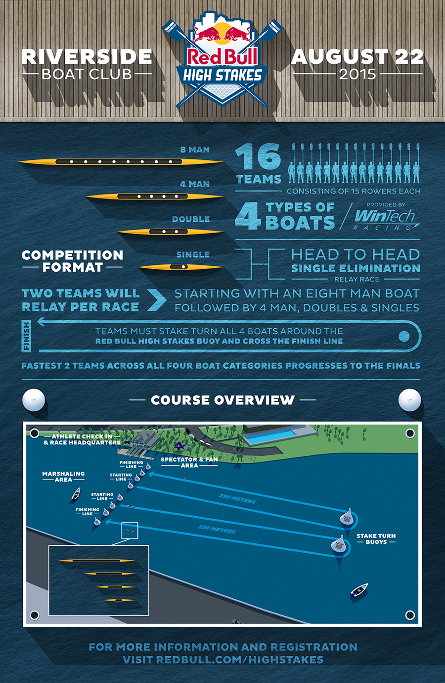 One British, five Canadian and 15 American teams have registered for the Red Bull High Stakes, which is hosted by Red Bull North America. The regatta will start with the athletes checking in at 10 a.m. Races are between 1 p.m. and 6 p.m.