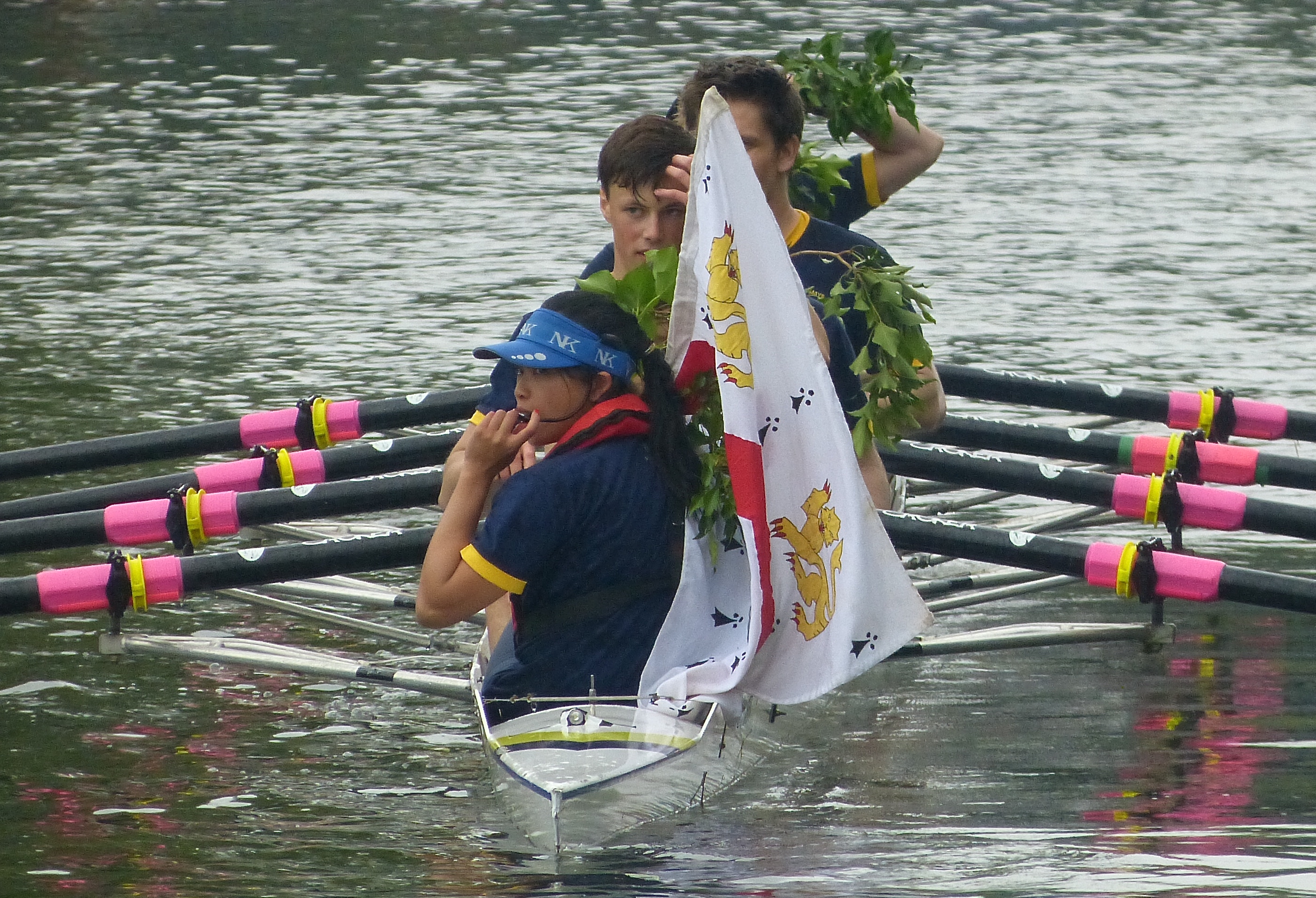 On the final day of racing, some crews will row back to their boathouse with their boat club flag draped over the shoulder of the cox. This usually indicates that they have bumped every day.