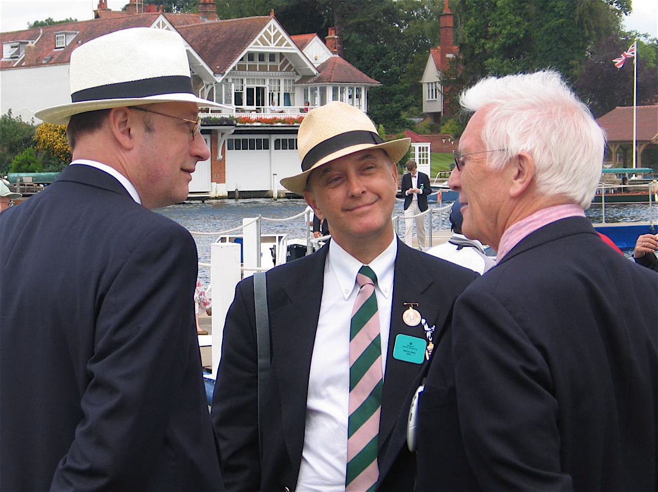 At the 2011 Henley Royal Regatta, HTBS Editor Göran Buckhorn (left) and contributors Tim Koch (centre) and Chris Dodd (right) discuss ‘all aspects of the rich history of rowing, as a sport, culture phenomena, a life style, and a necessary element to keep your wit and stay sane’. Photo: Hélène Rémond.