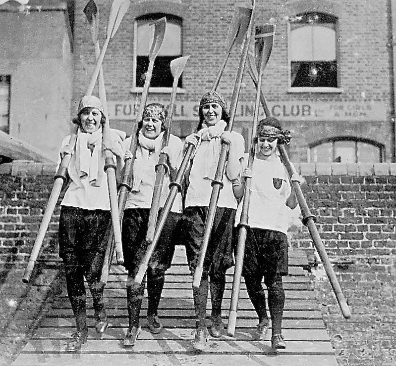The 1920s was a tough time in Ireland, so we shouldn’t compare their rowing kit to that of the fashionable women at Furnivall Sculling Club (above) photographed in 1924.