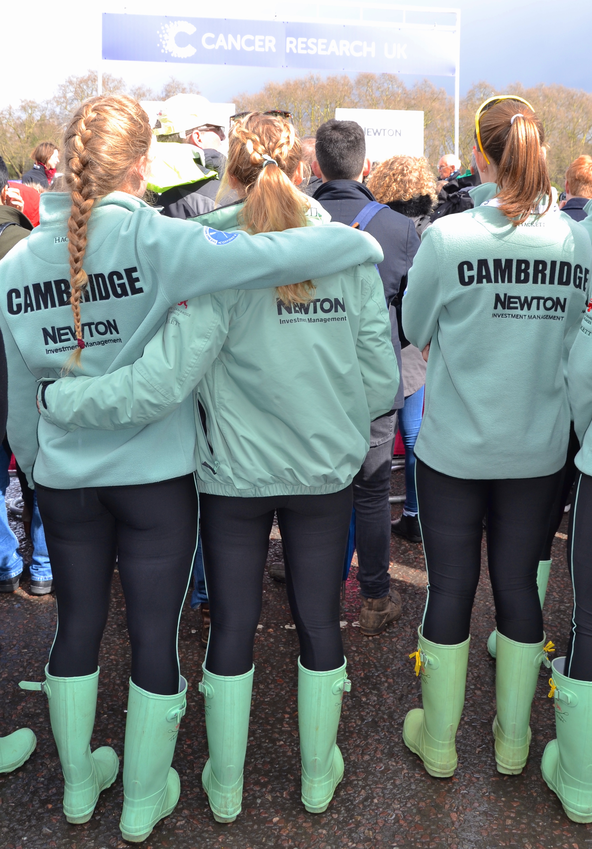 At 11.30am the weather looks promising.At 2pm there was a heavy shower. The trophy for the men’s race is sheltered from the elements.The coin toss for stations. On the far left is Helena Morrissey, CEO of Newton Investment Management and one of the prime movers towards parity between the men’s and women’s races. On her left is David Searle, one of the Executive Directors of the Boat Race Company Ltd (and a Cambridge Blue). On David’s left is the Women’s Race Umpire, Rob Clegg. On the right, with the microphone, is Barry Davies, veteran sports commentator and ‘Voice of the Boat Race’ between 1993 and 2004. Oxford won the toss and chose Surrey.Watching the Osiris-Blondie coin toss.Oxford boats.Cambridge too.Oxford Women’s Reserves, Osiris, come out of Imperial College Boat House. On the left is Vesta Rowing Club, in the middle, Thames.London Rowing Club viewed from the water. I am not sure who sponsors them.For the Women’s Race, a dark blue flag flew at St Mary’s, Putney……………. and a light blue one at All Saints, Fulham, the churches at opposite ends of Putney Bridge. As Chris Dodd explained, ‘they signified the stations of crews, not the Cross’.Spectators on Putney Bridge.Sir Matthew Pinsent, Women’s Boat Race Assistant Umpire, and Christine Wilson, Oxford University Women’s Boat Club Coach.For the first time, this year the timing was automated. I was surprised and delighted to be asked to help with the back up to this technological advance using the old-fashioned stopwatch method. The timing points are the Mile Post, Hammersmith Bridge, Chiswick Steps, Barnes Bridge and the finish.On the stake boat, Cambridge indulging in some last minute bonding.The culmination of thousands of hours of training – on the start and ready to go.