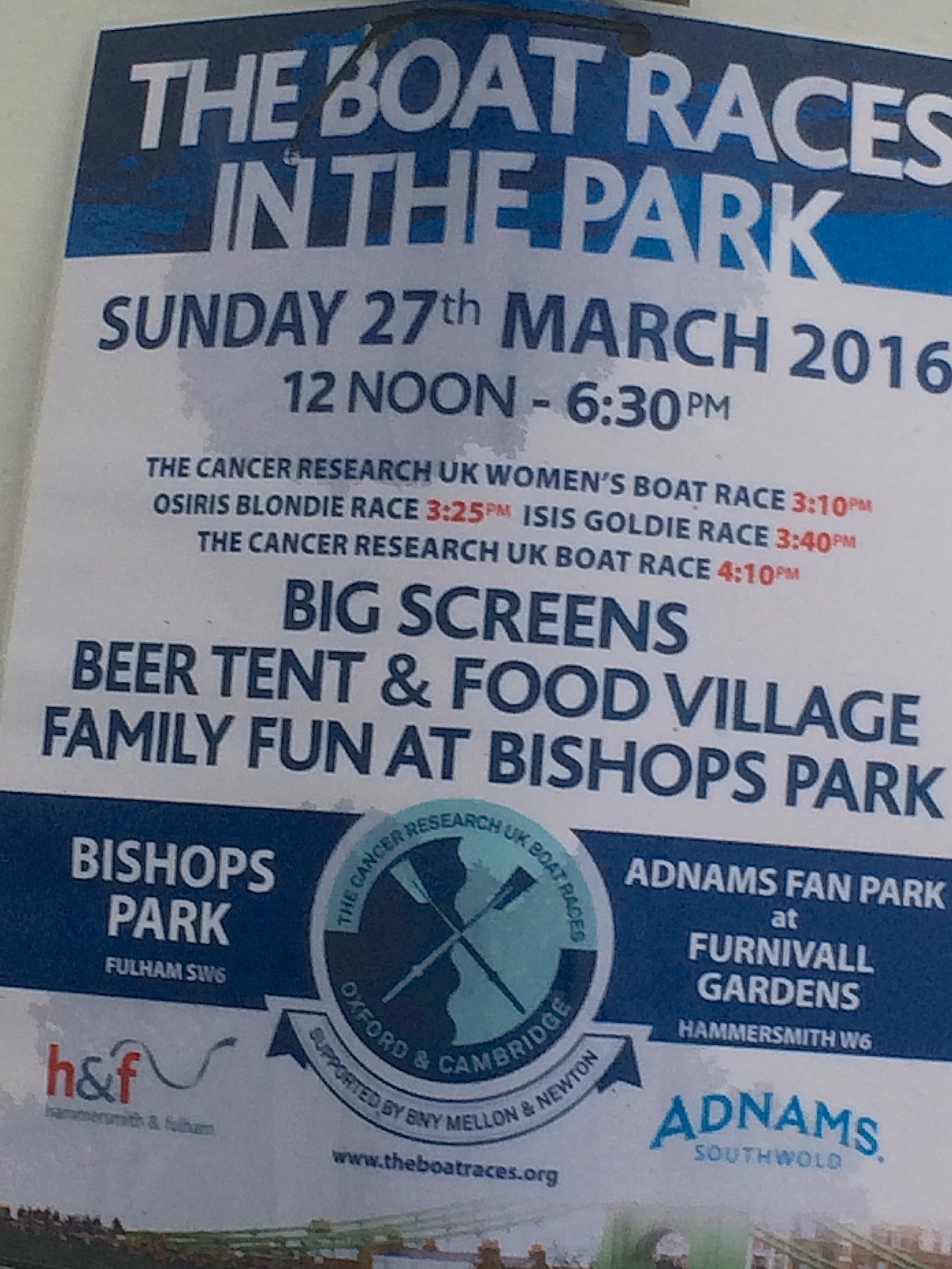 The date is correct for Boat Race Day 2016, but this London Underground poster was for the race of 1920.Ninety-six years later, people demand more than just some boat races to entertain them.