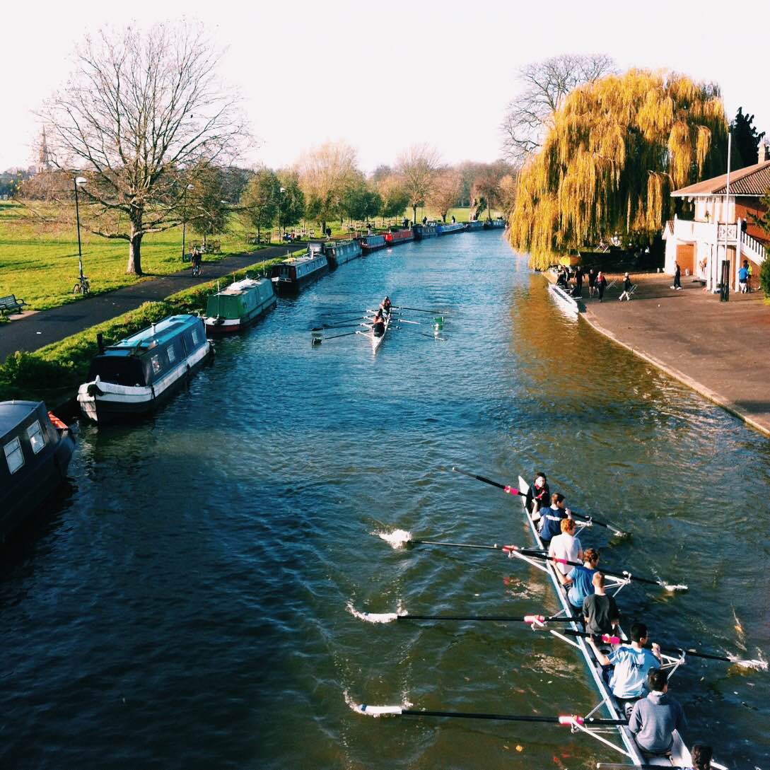 Exams don’t mean we do less work in the boat. This week, we’ve been doing daily ‘double runs’. A ‘single run’ on the Cam means rowing all the way downstream to the spinning zone at Baits Bite Lock, and then back to the spinning zone downstream from the Green Dragon Footbridge, colloquially referred to as the ‘P&E’ after the Pike and Eel pub that used to stand there. As a novice, even a single run seemed a long way – many novice boats only row half that distance to the spinning zone at the end of the Long Reach, the longest ‘straight’ section of the river.