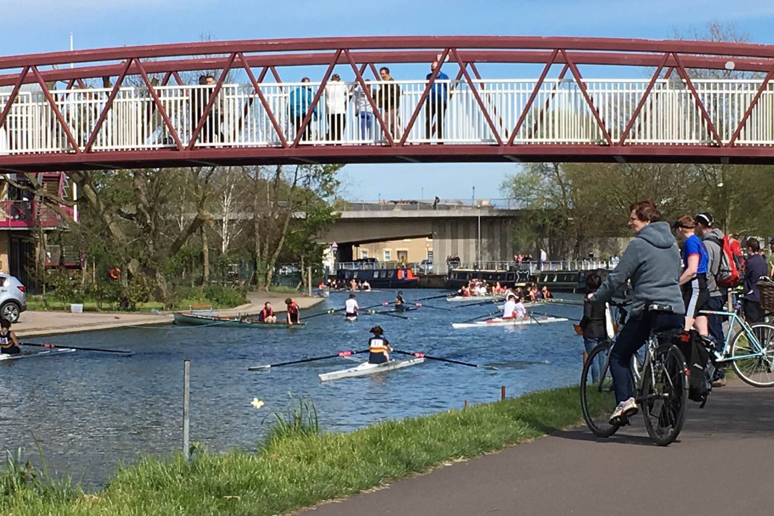 It appears I lied last week! I told you that Fairbairn Cup is the only time that shells are allowed up to race pace on the upper reaches of the Cam lined with narrowboats and boathouses. Well, I spent this Sunday afternoon watching several divisions of City Sprints, a 400-metre side-by-side race on one of the narrowest parts of the Cam. All of the local narrowboats are moved for the day, but there was still a delightful amount of carnage.