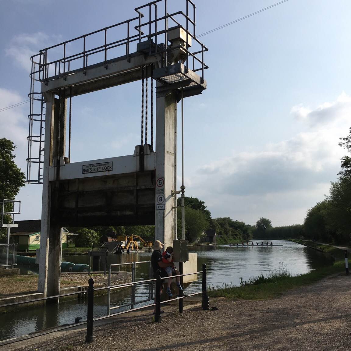The other option for crews seeking to do longer pieces uninterrupted is to go ‘over the lock’. University crews, first boats and boats in the top two divisions of May Bumps are allowed to row on the river downstream of Baits Bite Lock, the downstream limit of the main ‘rowing’ portion of the Cam. The process presents several challenges including parking on the bank while avoiding the slipway, getting the boat out of the water without capsizing or anyone slipping down the bank, carrying the boat around the lock without hitting the riggers on bollards, hedges or cyclists, and then getting down the steep stairs on the other side to put the boat back in the water.