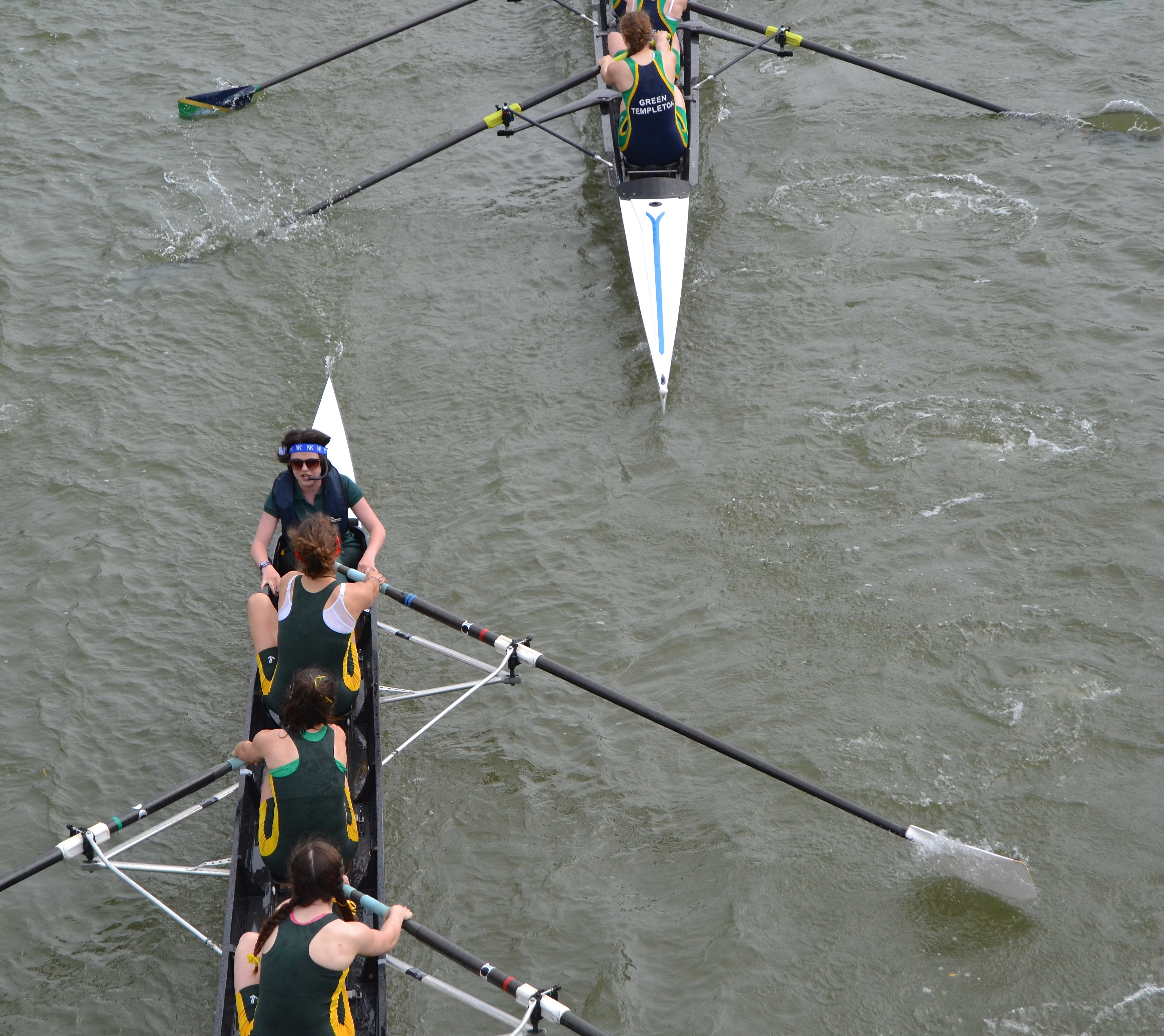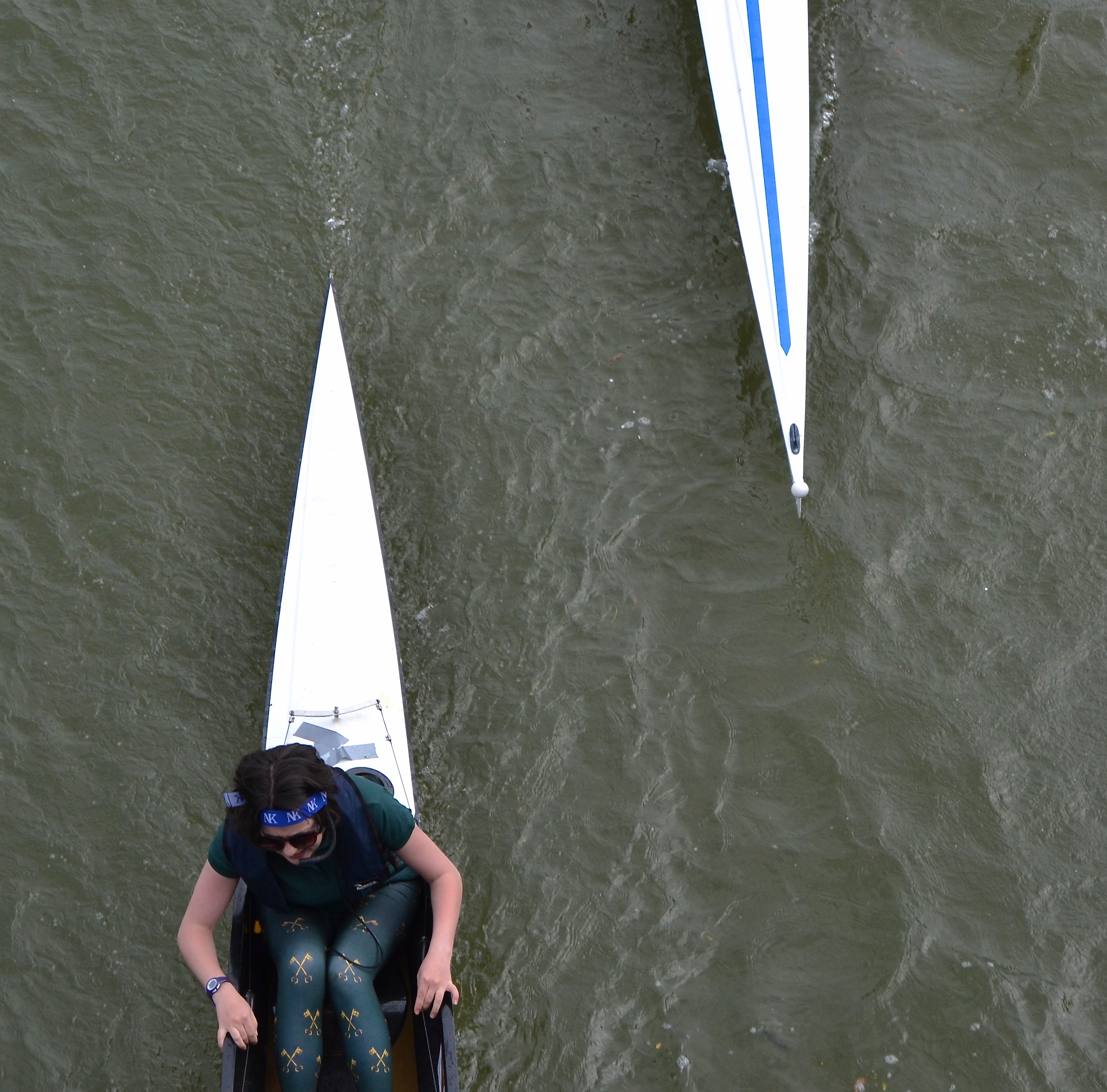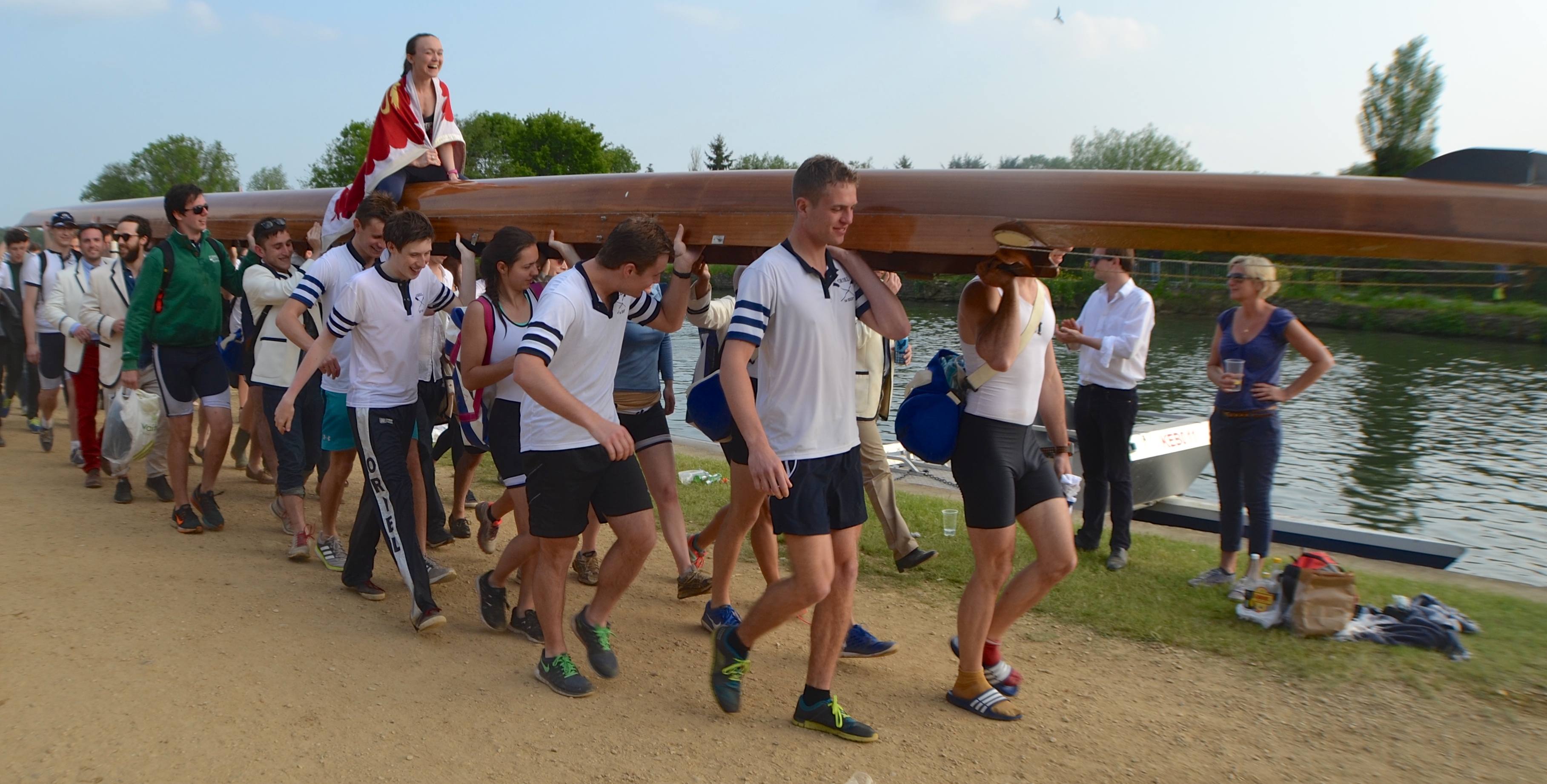The names in the chart above are in the order in which they finished in 2015. For each day of the 2016 races, a horizontal line means that the crew ‘rowed over’ (i.e. they did not bump and were not bumped), a line going up indicates that they bumped another crew, a line going down marks the fact they were bumped. Thus, looking at the Oriel Men, they ‘rowed over’ every day and remained ‘Head of the River’. Christ Church also rowed over and failed to bump Oriel and so finished second again. Third placed Pembroke rowed over on Wednesday, Thursday and Friday but on Saturday they were bumped by Keble. Thus Keble finished the week (and will start next year) as the third placed crew and Pembroke went down to fourth. Keble had started the week going off sixth but had rowed over on Wednesday, bumped Wolfson on Thursday (and so took their fifth place), bumped Magdalen on Friday (and so took their fourth place). Thus, by Saturday, Keble went off fourth, bumped the Pembroke crew in front of them and took their third place.