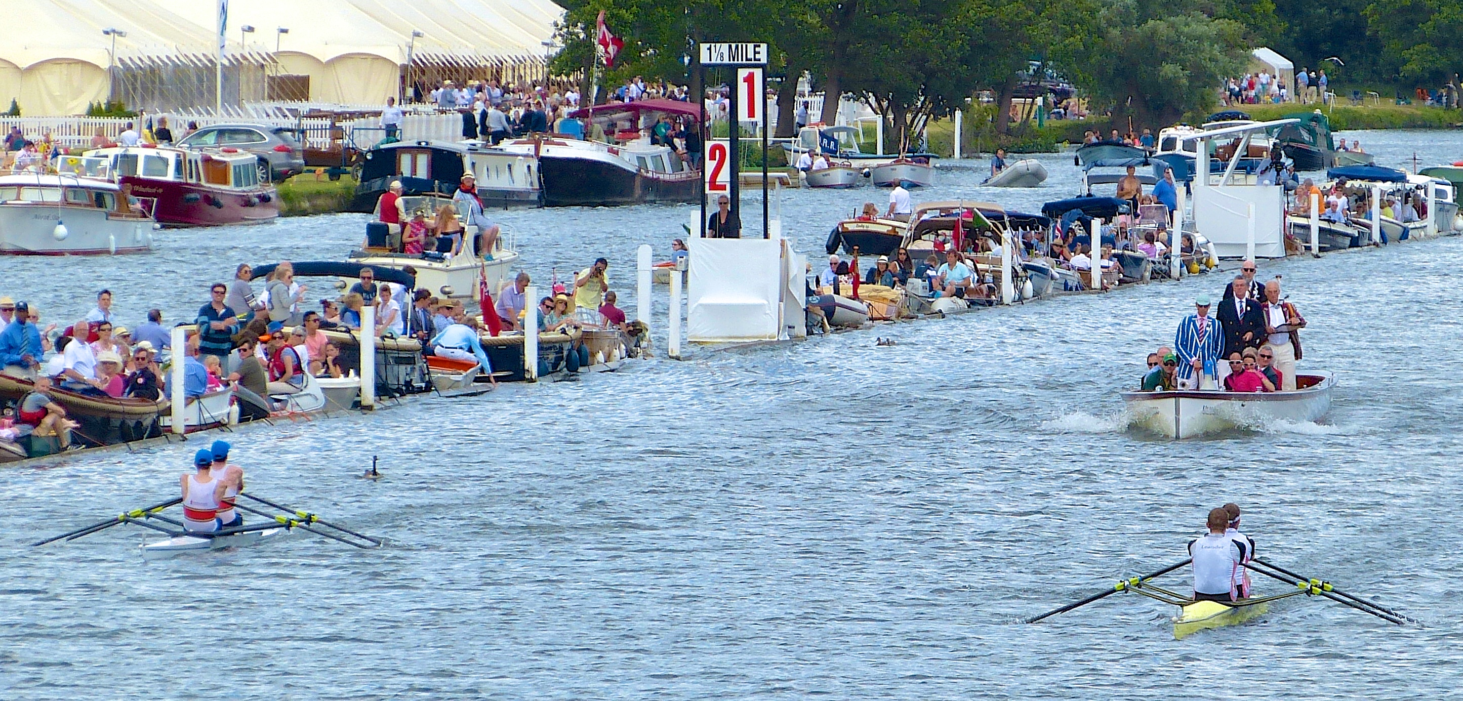 In many ways, rowing is not a great spectator sport. For most of its history, only a part of a race could be viewed by those on the bank or moored on the water. A few events attempted to mitigate this problem. The straight Henley reach has long had its 1 – 2 indicator boards which show the relative positions of boats at various points and, in the past, the Oxford – Cambridge Boat Race had various indicators along the course which were raised and lowered to indicate the leader to those with line-of-sight.
