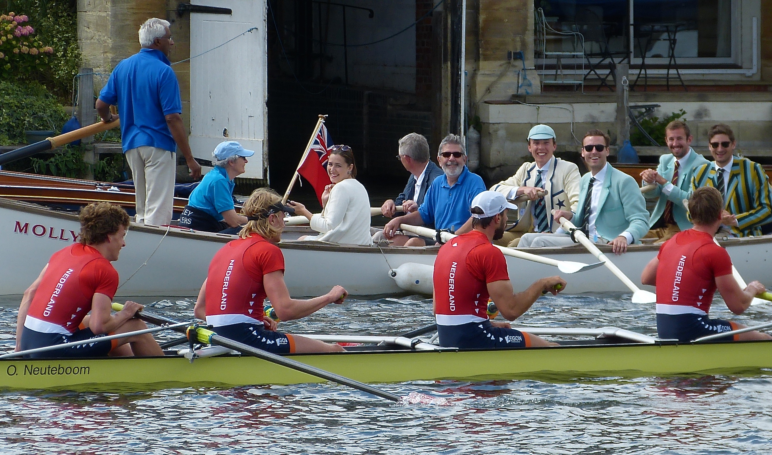 Even when Obreno made a great start and went a few feet up while sculling beautifully, most of us assumed it would be a typical underdog performance when the presumed loser puts all his energy into at least leading to the end of Temple Island or the Barrier. Further, Drysdale can have a famously relaxed start so it was only around the mid-point of the race that it began to look as if we were witnessing something very special with the Belgian leading and, at 32 strokes per minute, underrating the Champion. Around four minutes in, Drysdale put in the push that most of us still assumed would finish the challenger off and, indeed, the Fawley time of 3.56 gave the New Zealander the lead. However, it did not last and, by the Enclosures, Obreno was back in front with Drysdale unable to respond to his finishing sprint. Olympic Gold Medallist and respected rowing journalist and commentator Martin Cross called the race ‘a privilege to watch’.