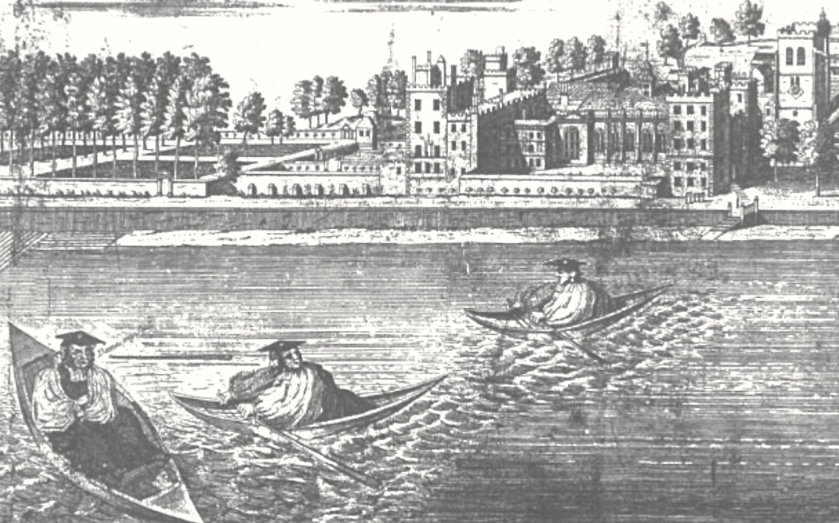 I am indebted to the 2002 edition of the magazine of Oxford’s St Catherine’s College Society for the picture above and an explanation of it. It shows three bishops, Benjamin Hoadly (Bishop of Winchester), Thomas Sherlock (Bishop of Salisbury) and Edmund Gibson (Bishop of London), sculling across the Thames from the House of Lords to Lambeth Palace. They were all rivals for the Archbishopric of Canterbury but the honour eventually went to John Potter, Bishop of Oxford. It is difficult to see in this poor copy, but Potter is already standing on one of the towers of Lambeth Palace. Gibson spots him, casts away his oars and cries, ‘Damn my Scull’. Presumably, this is a near pun on ‘Damn my Soul’. The idea of using a rowing boat or its crew as a political metaphor is a hackneyed one – but is this the first known example?