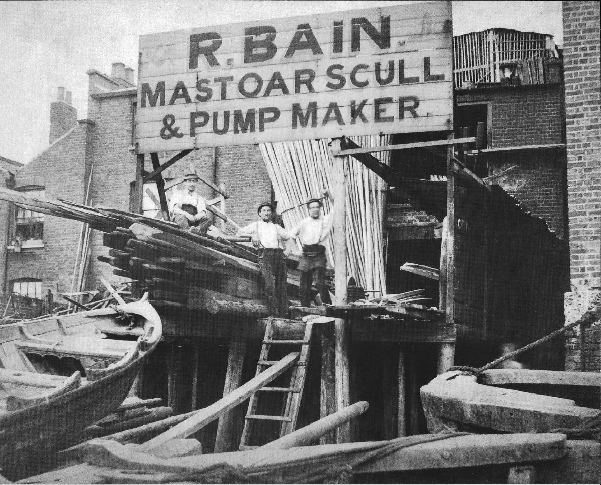 Many photographers and artists are attracted to portraying river scenes and fortunately for those of us with an interest in the history of boatbuilding and hire, Croad’s book contains many such scenes including a building with Harry Clasper’s name on it, the famous northeast of England pioneering boat builder.