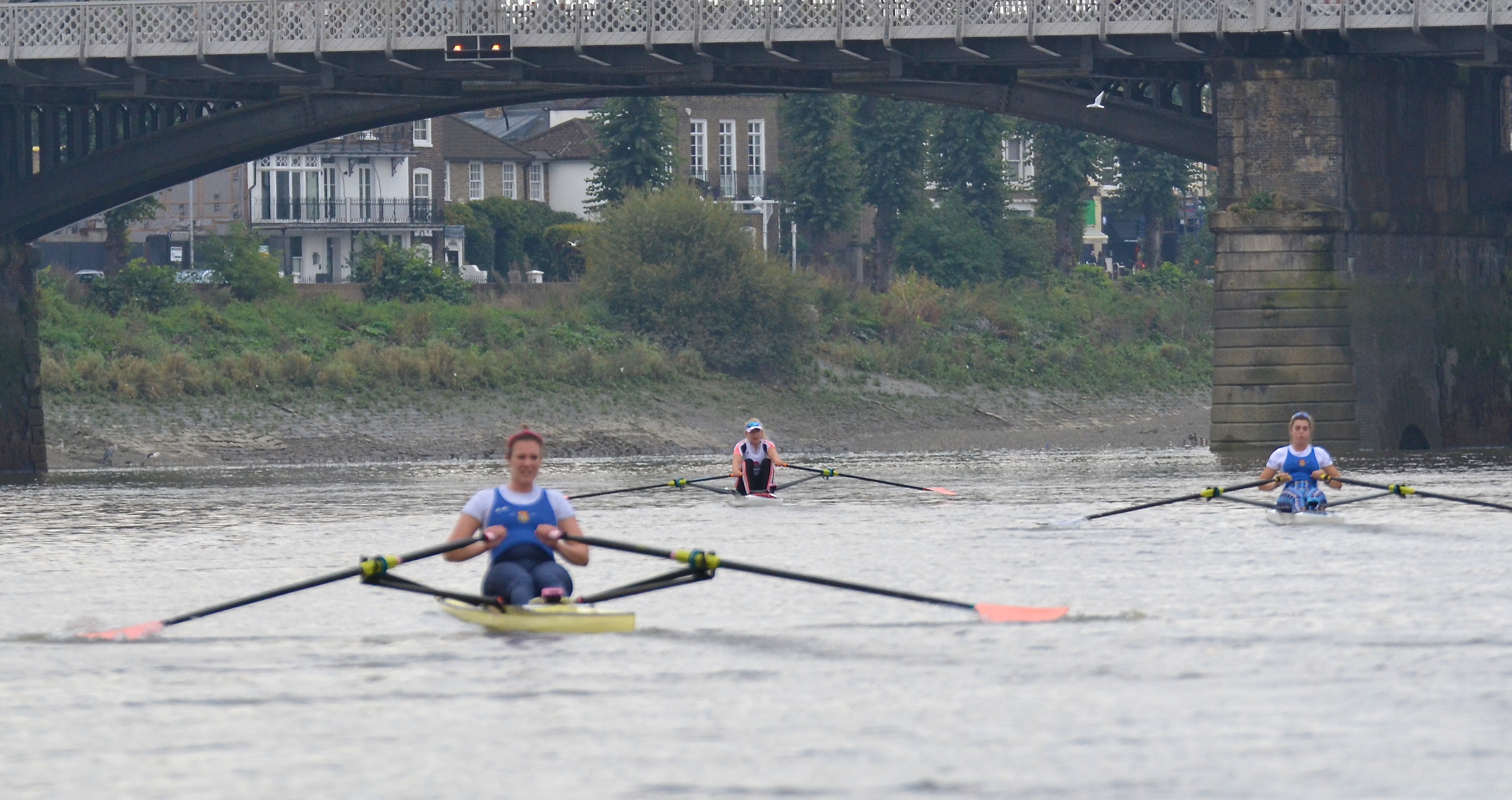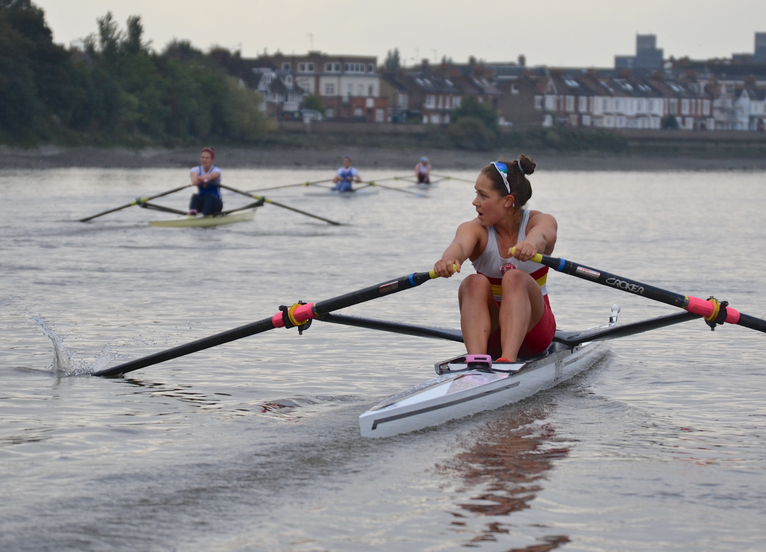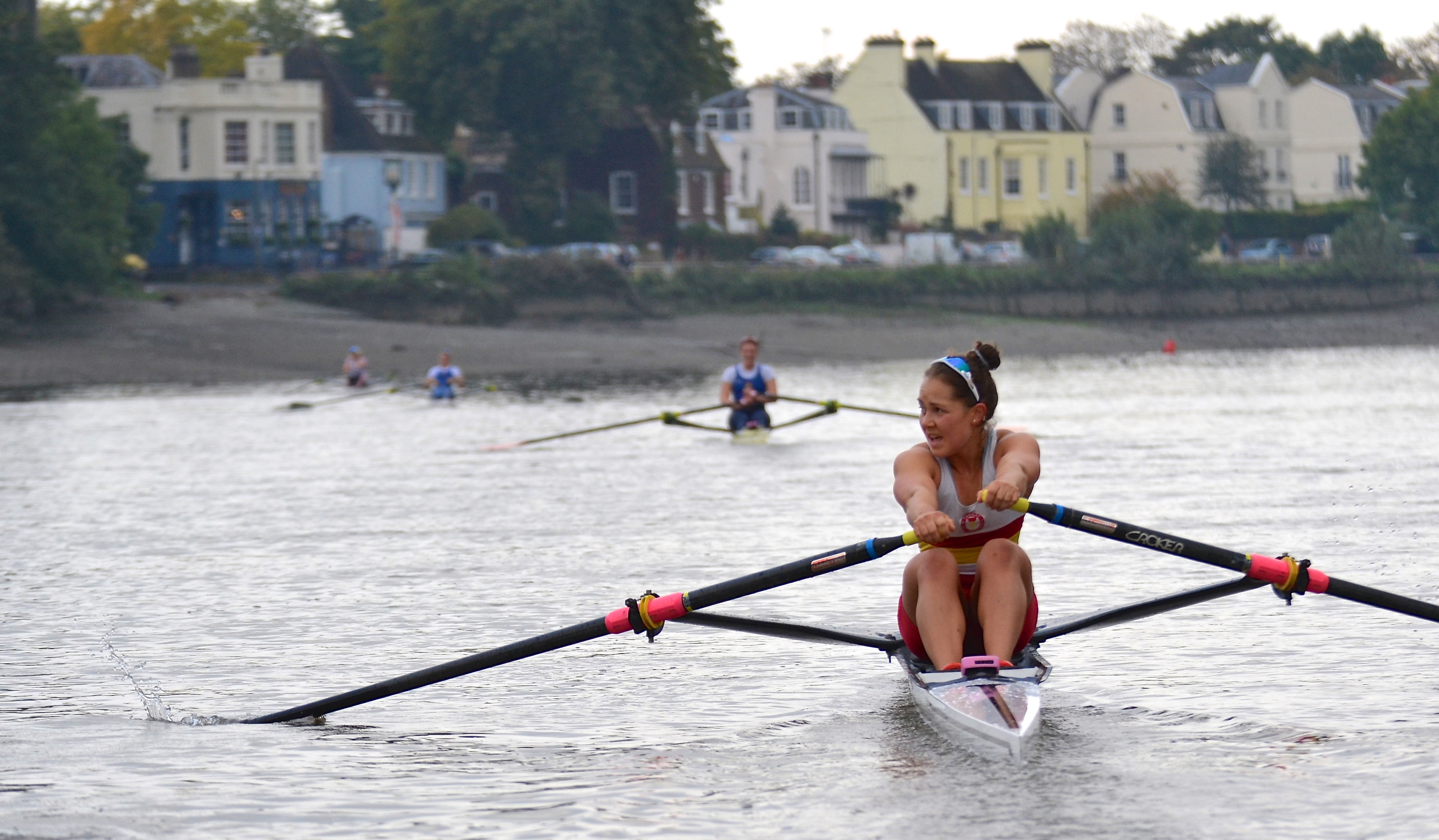 Race day came with ‘near perfect’ conditions, probably to the relief of the lightweight entrants. The Women’s Wingfields attracted four entrants, each with a different story behind them. The 21-year-old Jess Leyden of Leander is one of the rising hopes of British women’s single sculling, not least because in 2013 she became the first-ever GB rower to win an international women’s single scull title (gold at the Junior Worlds) and her aim is selection for the 2020 Olympics. Putney based Imperial College put out two contenders, Georgina Francis, the only returning competitor and who come second last year, and Pippa Whittaker, who won gold in both the single and the double at the 2014 Commonwealth Regatta. The other ‘local’ was lightweight Amelia Carlton of Chiswick’s Tideway Scullers who joined the club twelve years ago at the age of ten and has since had a full career on the Tideway and at Durham.