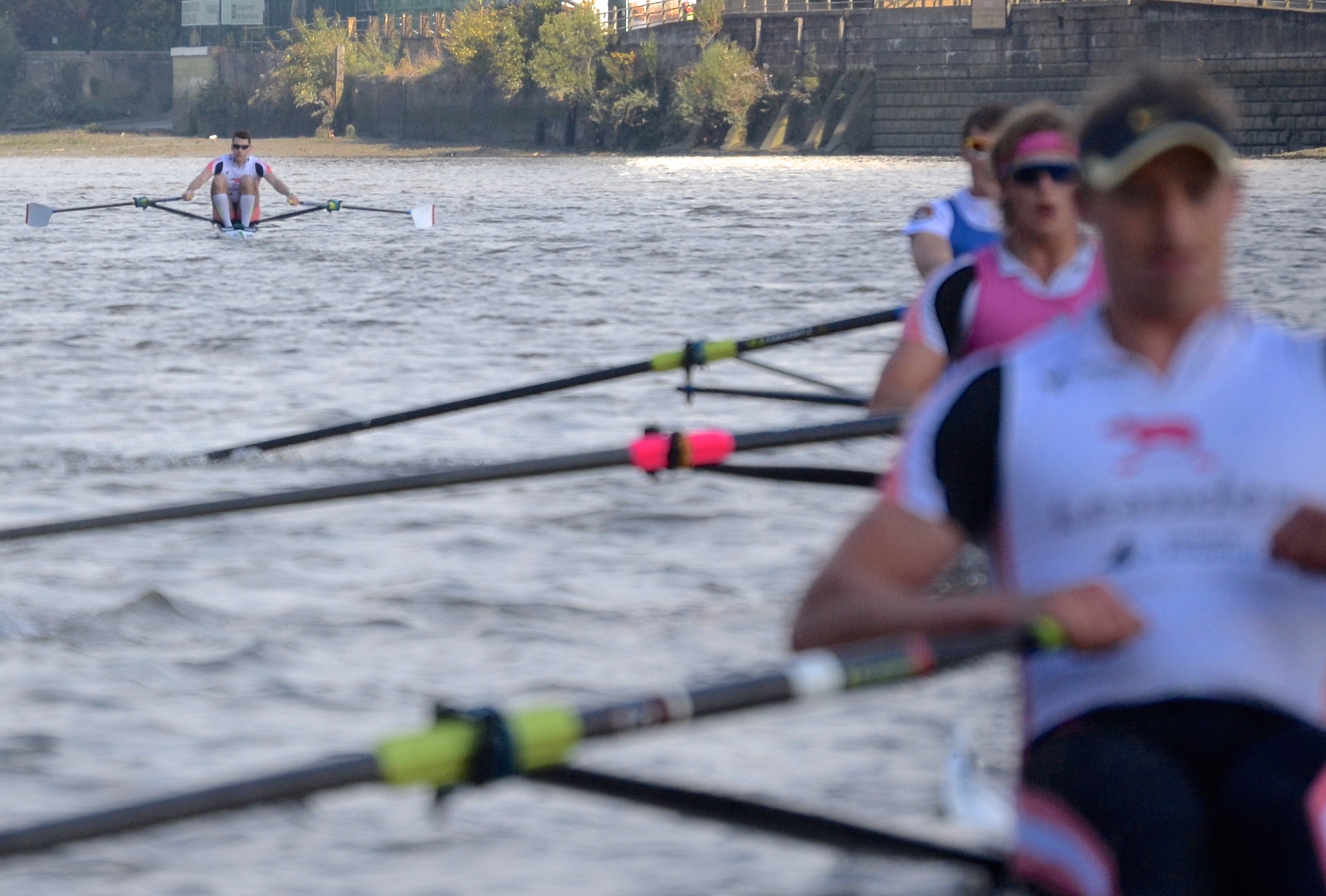 I knew that technically I was on the slower side at the beginning so I needed to have a pretty fast start…. I was in the bunch, never more than half a length down…. Coming into Barn Elms I thought I’m in second place now, half a length off, I going to put a good push in and try and drop everyone early on and get the best water. I did that, got clear, moved across, got the good water and it was nice to be ahead of all the palaver…. I saw (the clash) and thought that I am really glad that I have broken this race early on and I am just going to move away and take advantage…. (but) I still pushed hard…. knowing that there was still a slight headwind and I am not the biggest person…….