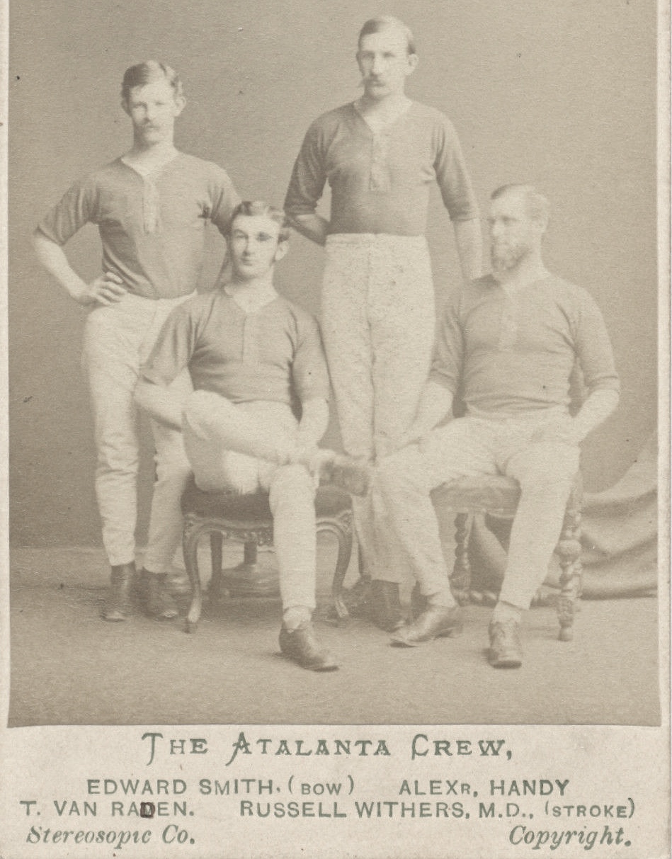 Yale, 1910 (click to enlarge).Trinity Hall, Cambridge, 1904.The Pennant Amateur Rowing Club, probably in the 1930s. The photographer is from Hammersmith, West London. I have particular knowledge of the history of rowing in this area – but can find nothing about this club. Something for the HTBS irregulars to research?A four from Saltaire Rowing Club, Bradford, West Yorkshire. A nice, rare glimpse into a staggered seat, fixed pin boat.1897: The boat club of St John’s College, Cambridge – Lady Margaret Boat Club.Potomac Boat Club, Washington, D.C., 1919.First Eight, Kings College, London, outside Biffen’s Anchor Boathouse, Hammersmith, 1922. The building is now the Auriol Kensington Rowing Club.In 1872, the Atalanta Boating Club of New York challenged London Rowing Club to a four-oared race on the Thames.Ernest Barberolle (1861-1948), a French cox who won a silver medal in the coxed pairs in the Olympic games in Antwerp in 1920.University College of Wales, Aberystwyth, Boat Club, 1906 (‘NCW’ should read ‘UCW’).St John’s College, Cambridge, aka Lady Margaret Boat Club, 1896.1911: A crew from Jesus College, Cambridge, who defeated a crew from Ghent, Belgium. This postcard is currently for sale on eBay. The listing gives the full crew. It notes that the coach in the flat cap is Stanley Melbourne Bruce, later Prime Minister of Australia, and that the man in the bowler is Steve Fairbairn, the famous Australian coach.Nassau Boat Club, 1894, was a club in New York City and the largest boat club in the USA in the 1870s and onward.Emmanuel College, Cambridge, 1st Lent Boat, 1894.This picture of a Stanford University, California, crew is perhaps from the early 1900s. It makes its way around the internet – but nobody is sure what it is all about. A fundraising calendar perhaps?