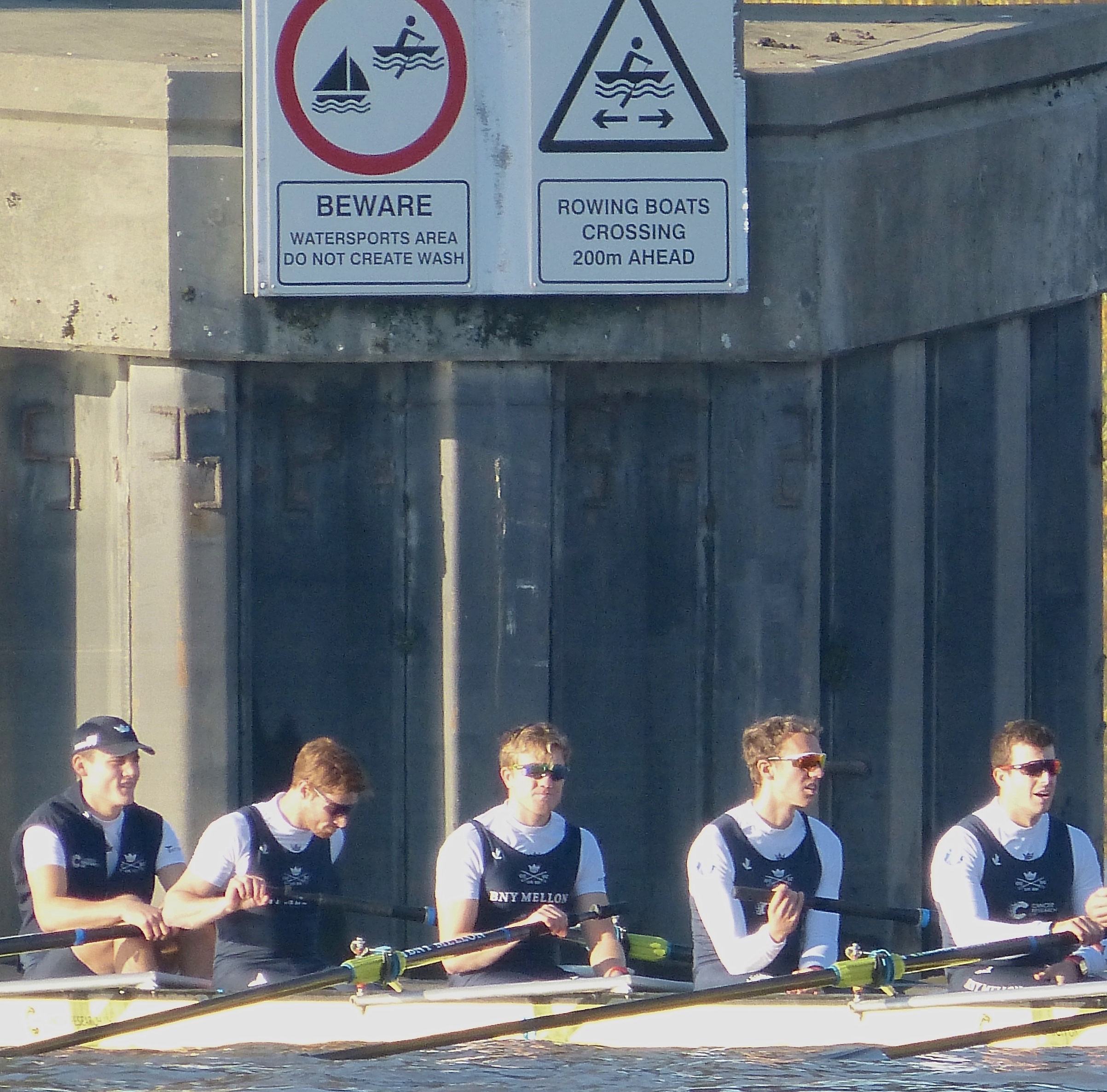 Oxford held Boat Race trial eights on a beautiful crisp day in Putney, and the men’s crews chalked up another first. At least, I assume it is a first. When Daniel lead Acer across the finish line at Mortlake, the crews continued racing until they passed the handsome University of London boathouse in Chiswick. No chance of giving away any speed secrets over the Championship course, then.