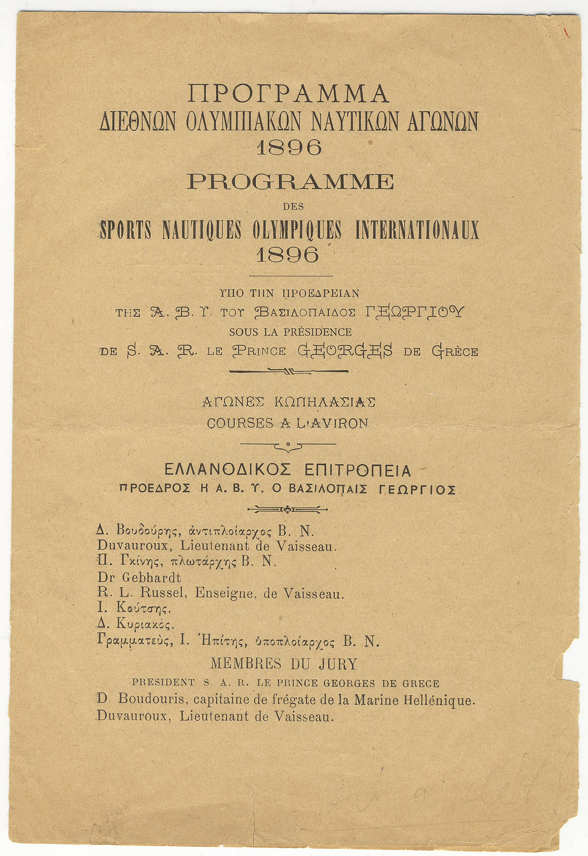 The original picture used to illustrate the unsold lot, a rare 1896 Olympic Games four-page programme for Nautical Sports, was not very clear and although legible revealed very little about the scheduled Olympic rowing regatta.