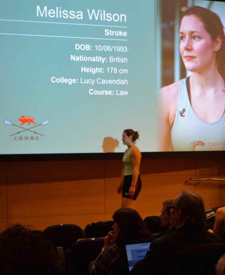 Melissa Wilson (Blue), the Cambridge stroke. Jenna Herbert from the United States will stroke OUWBC.