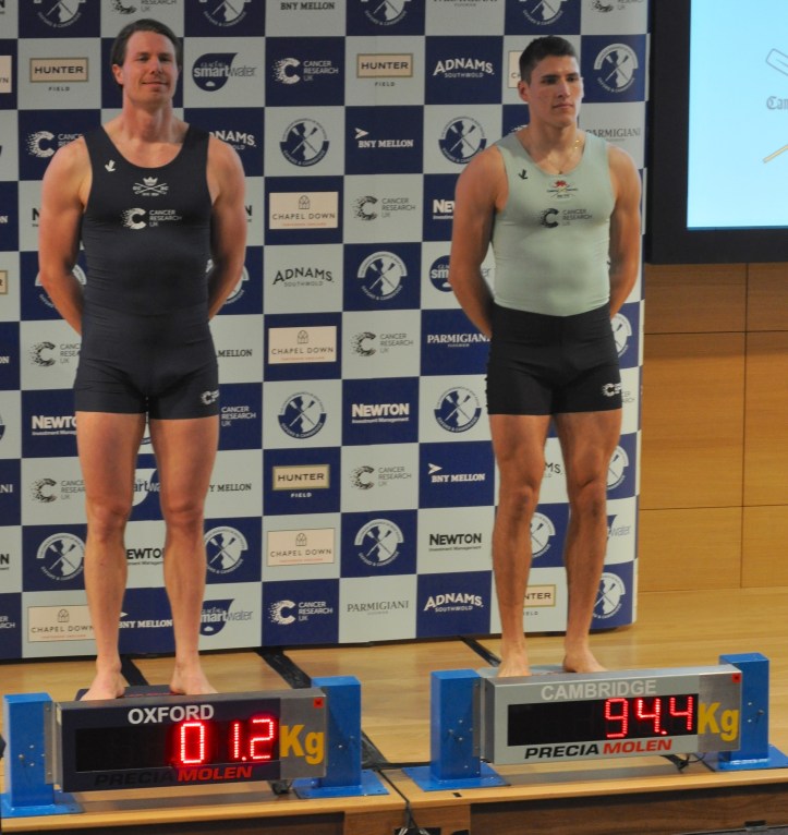 In a shock development at the ‘Crew Announcement and Weigh In’ for those men and women from Oxford and Cambridge Universities taking part in what are now called the 2017 Cancer Research UK Boat Races, it was revealed that the rowers who have been chosen to compete on Boat Race Day, 2 April, are mostly tall and heavy, while, conversely, those who will be steering the crews are all short and light. This revelation was immediately followed by what soon became a paradox when each of the four coaches present announced in turn that they were confident that their respective crews would win. HTBS will keep you up-to-date should there be any changes in this state of affairs. A press release expanded on the situation, I have reproduced it below and included my own pictures and captions. Of the men, it said: