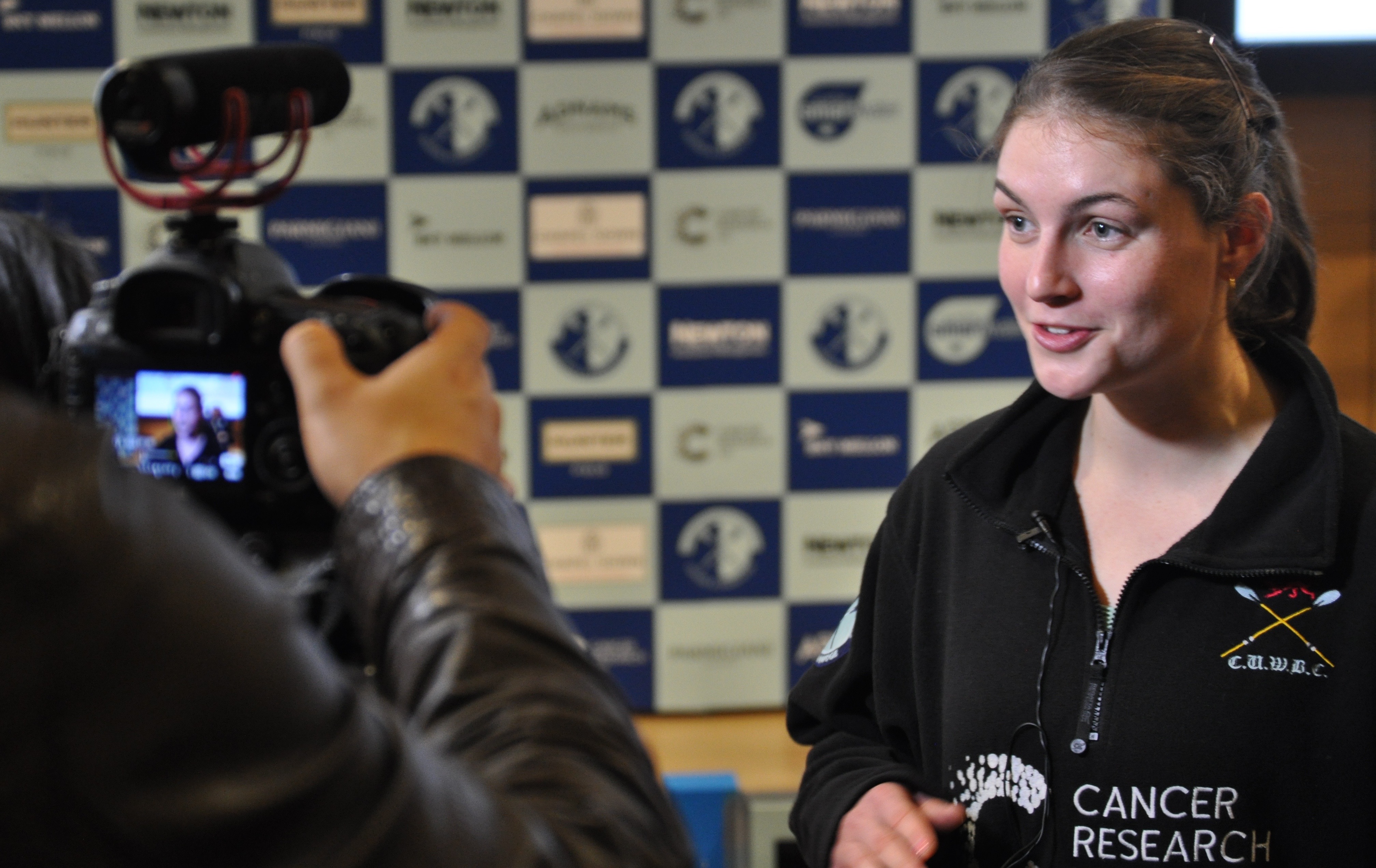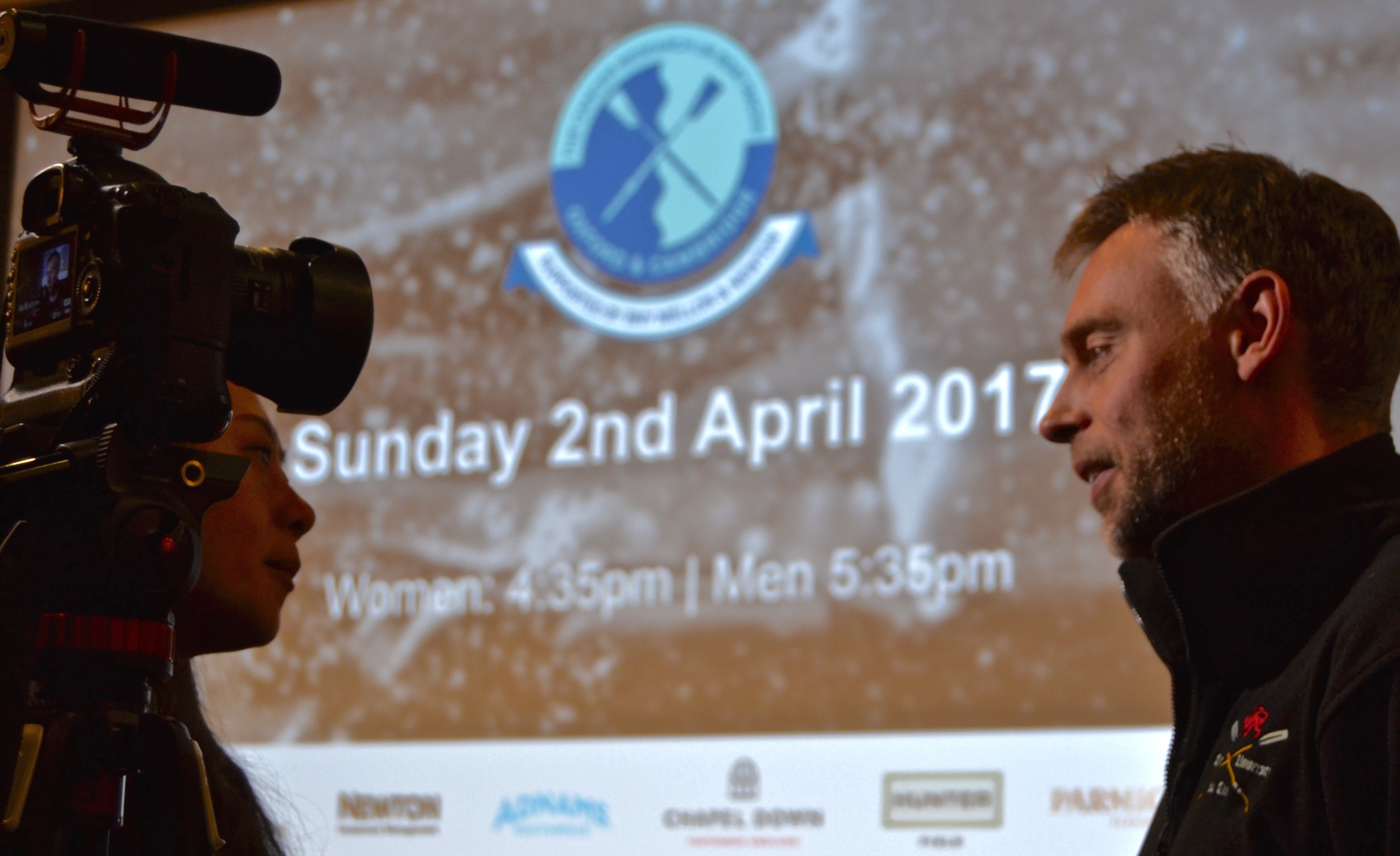 Steve Trapmore, the Cambridge Men’s Coach, with a date that is much on his mind. Here, he is interviewed by a television crew from China.