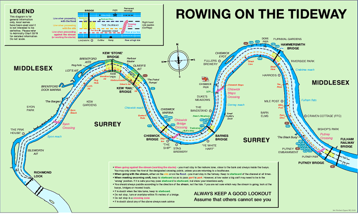 Crews that normally row on slow moving rivers, canals or lakes/reservoirs can be easily caught out by the speed of the water on the Tideway.