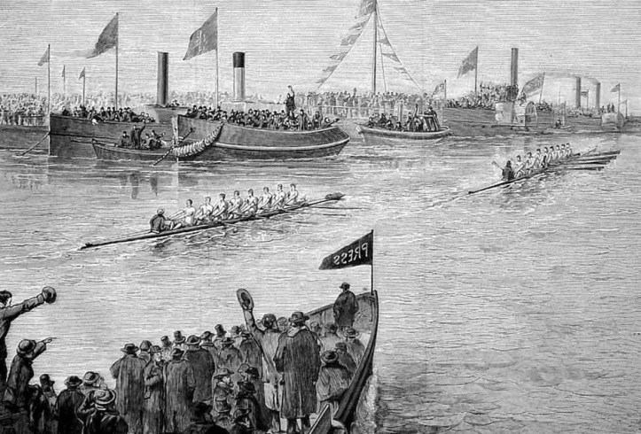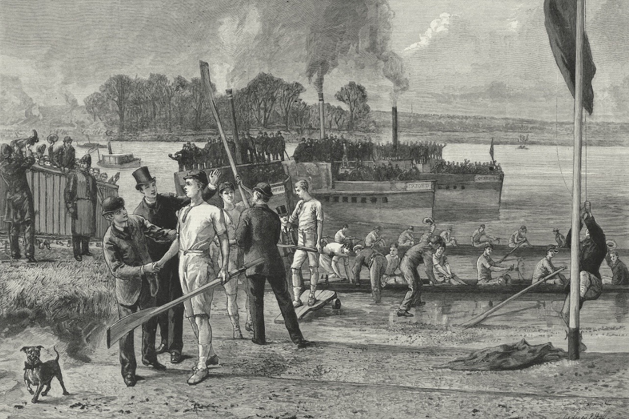 In rowing, Jean-Baptiste Alphonse Karr’s epigram, plus ça change, plus c’est la même chose (usually translated as the more things change, the more they stay the same) can most famously be applied to both Henley Royal Regatta and The Oxford-Cambridge Boat Race. Following Sunday’s annual battle between the two shades of blue, I have assembled a collection of pictures to illustrate the fact that, while since the first race in 1829, the contest has constantly changed to reflect evolving economic, social and sporting conditions, those many Old Blues who have gone before would not have found the events of 2 April 2017 entirely unrecognisable. First though, an explanation.