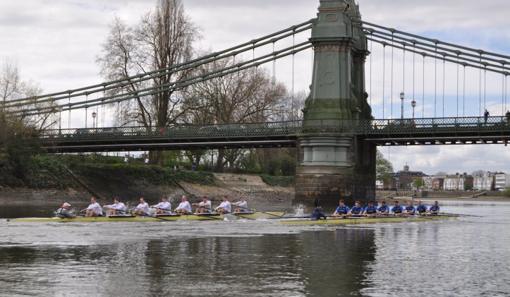 The 163rd Boat Race Day saw four races over the Putney to Mortlake course, those between the men’s and the women’s Blue Boats and also their reserve crews. However, those who watched the event on BBC1 television could be forgiven for thinking that there were only two races, as the second boats failed to get much of a mention. Further, those viewers not paying close attention may have thought that there was another aquatic contest taking place as a recording was broadcast of a ‘celebrity boat race’ that had been held earlier in the month. In this, people of varying talents took time off from dancing and making cakes in order to row badly. Sadly, the best boat race on the Thames Tideway that weekend was not televised and is known to but a few.