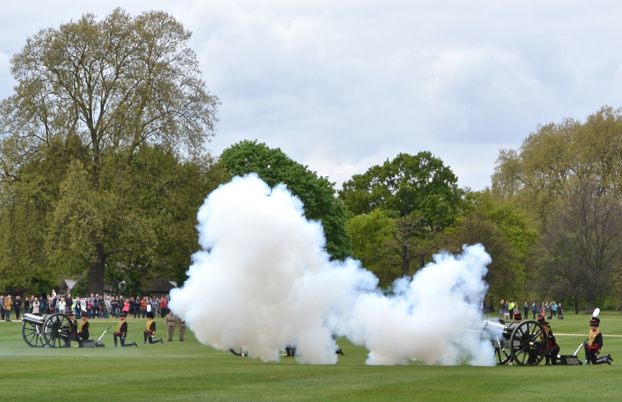 Queen Elizabeth II has had many unusual experiences in her life, but having had 181 birthdays must be a unique achievement. However, this seemingly impossible number has been reached only because, since 1748 the British Monarch has had two birthdays, one on the anniversary of the day that they were born, and an ‘official’ one in June (when the weather is more suitable for outdoor celebrations). The Queen’s 91st ‘real’ birthday was on 21 April and, in honour of the occasion, a 41-gun salute was fired from London’s Hyde Park and a 62-gun salute was fired from the Tower Of London. I went along to witness the salute in the park.