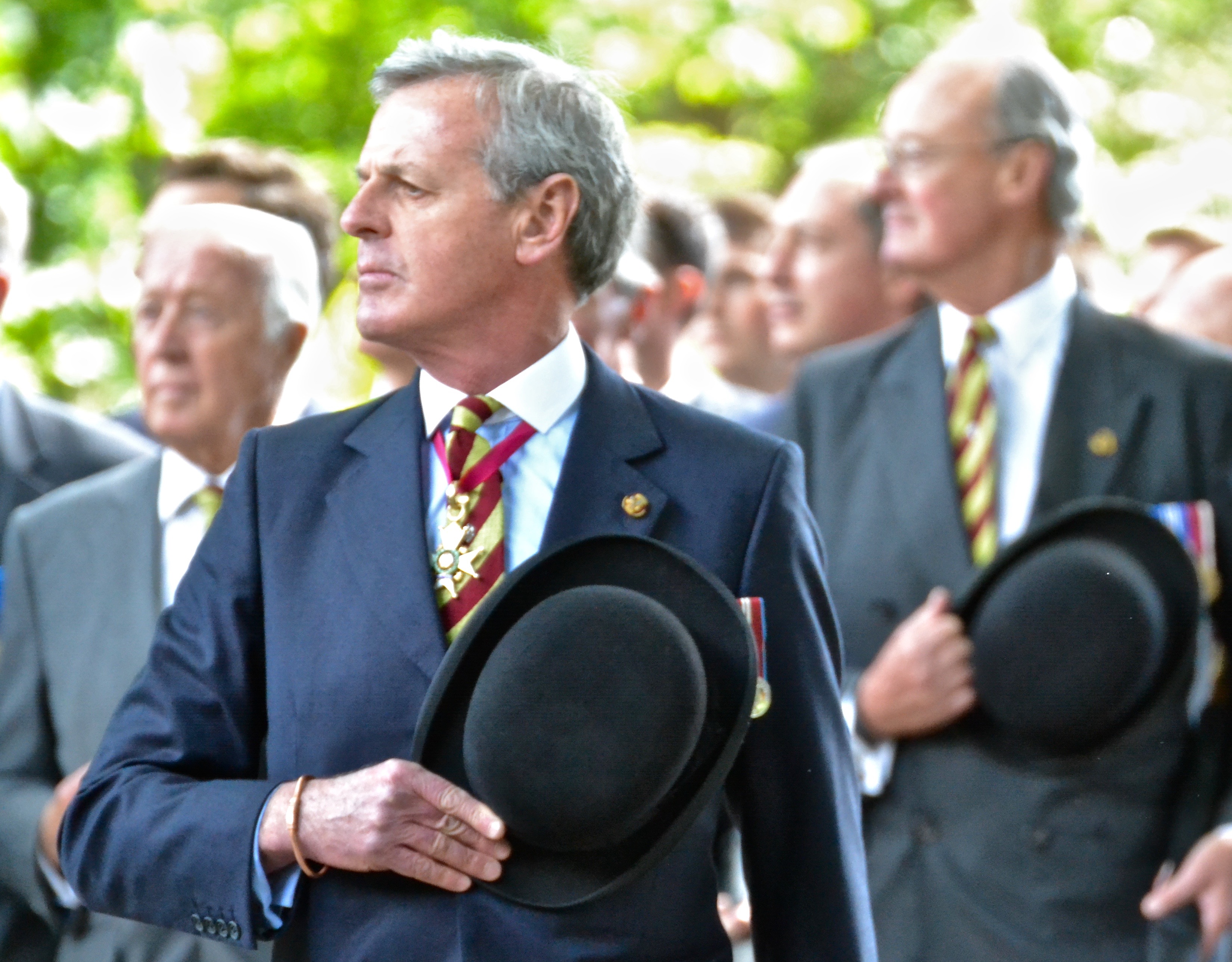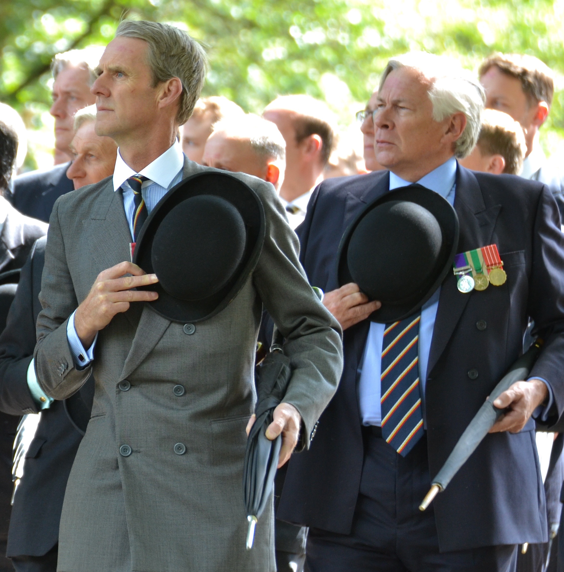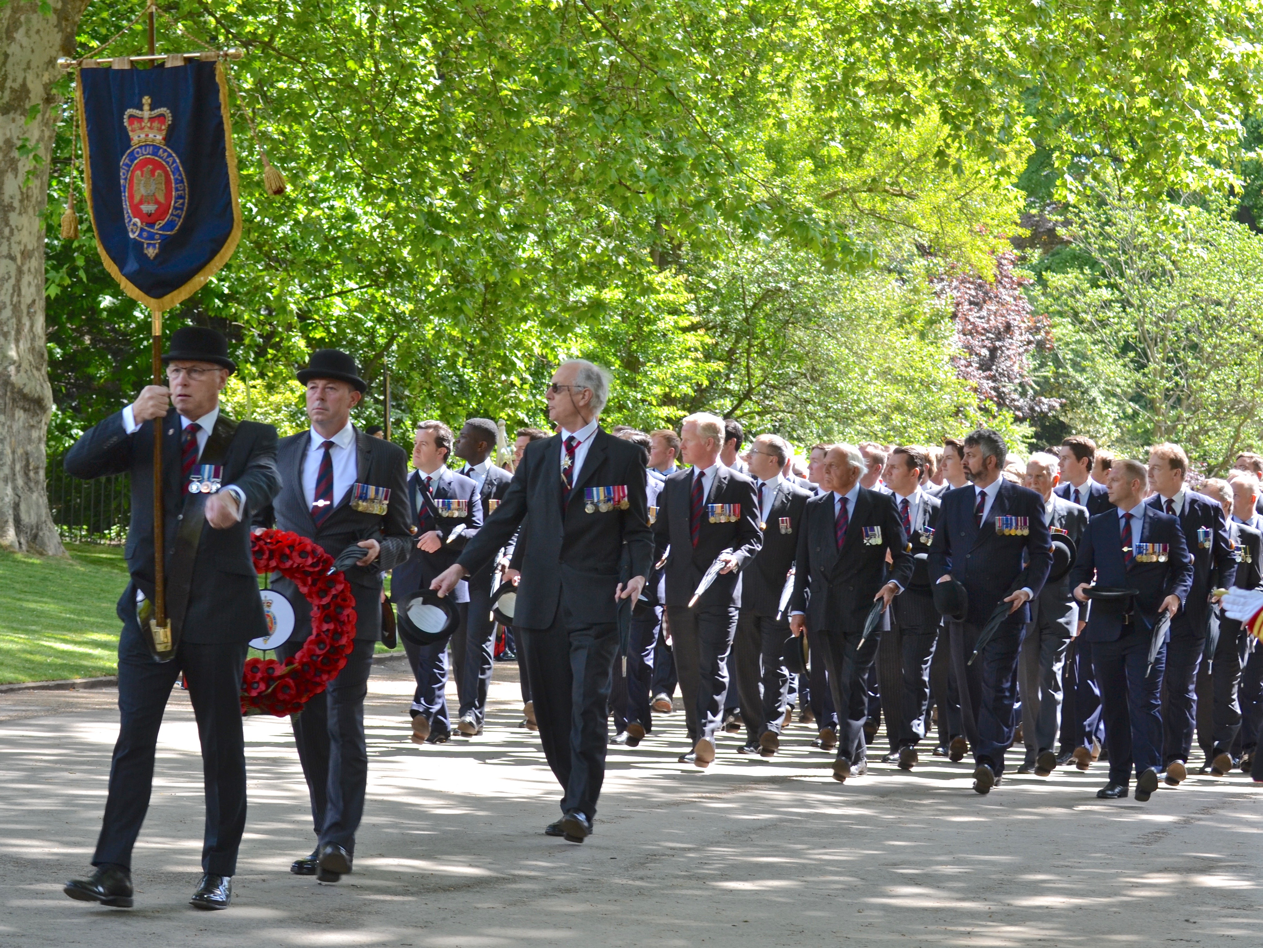 On Sunday, 14 May, I attended ‘Cavalry Sunday’, a memorial parade that is as poignant as any in its remembering of those killed in conflicts past – but which has a unique aspect to its ceremonial. The Combined Cavalry Old Comrades Association Parade and Memorial Service is held on a Sunday in May every year when former members of British cavalry regiments march past the Cavalry Memorial in Hyde Park and then hold a short service, also attended by family and friends. Many of those parading carry furled umbrellas held in a particular way (sword substitutes perhaps), and wear bowler hats (U.S.: derbys), the stereotypical British headgear that is rarely seen nowadays. Officially, the dress is simply lounge suits with medals and decorations.