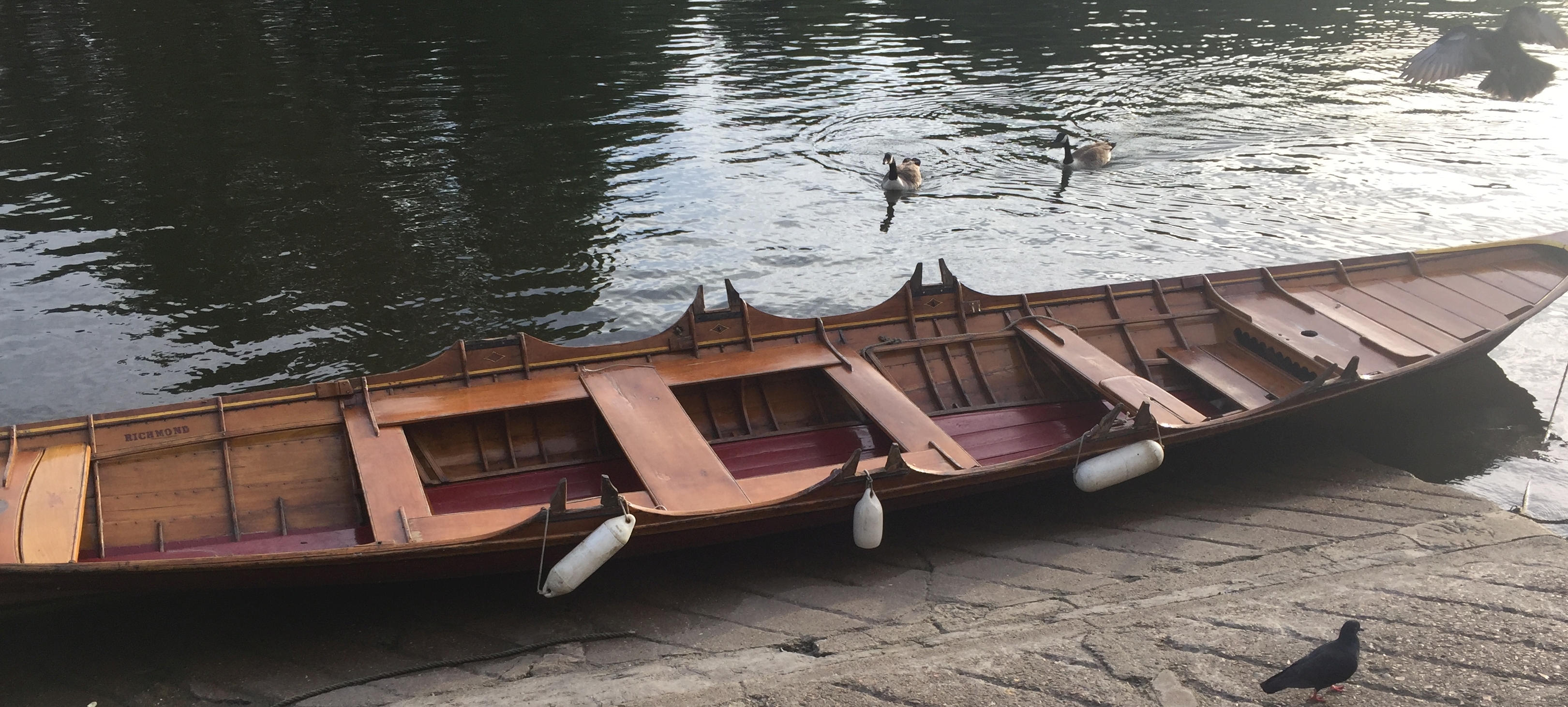 A couple of nights ago, I was in Richmond-upon-Thames (on the western edge of London) for a meeting of the Richmond Amateur Regatta committee (there will be more about this regatta in a future article). Before the meeting, I strolled down to the river and noticed a skiff moored up at the bottom of the slipway below Richmond Bridge.