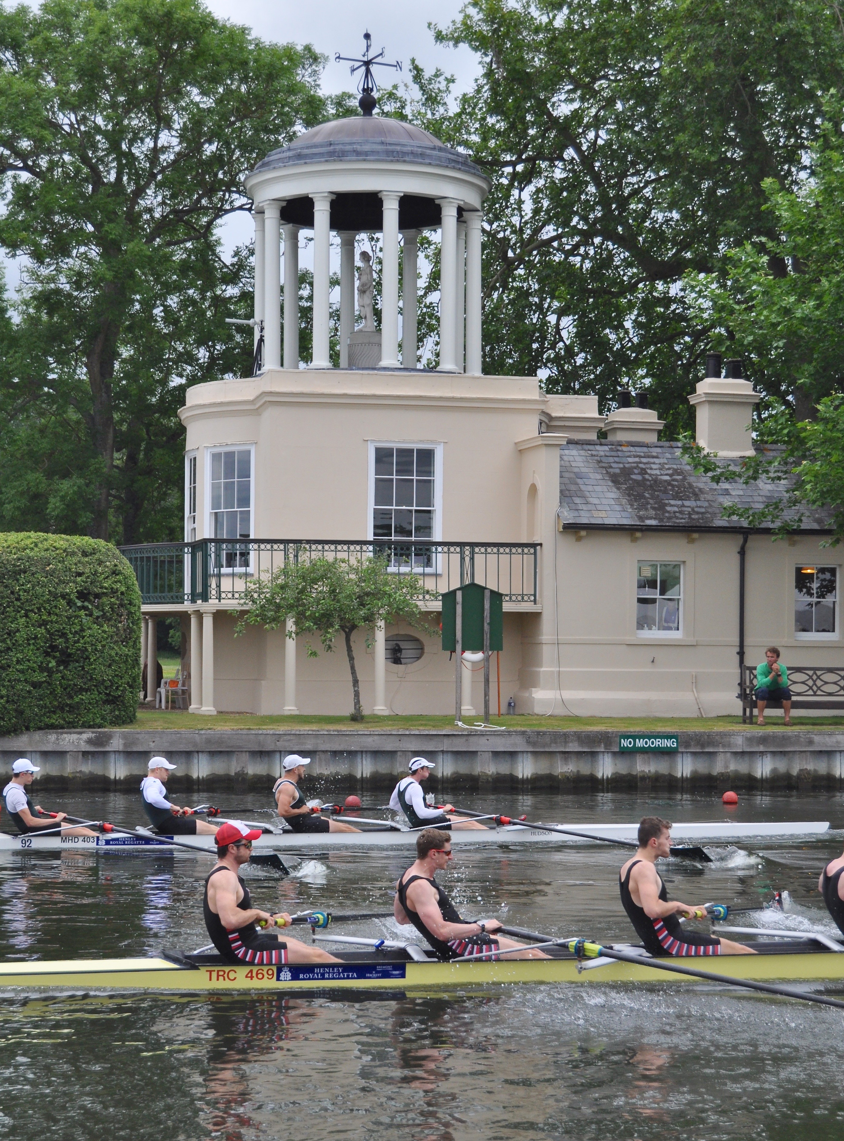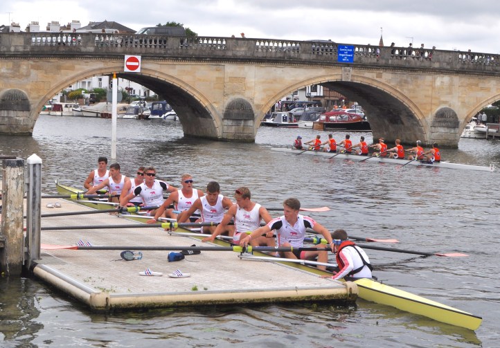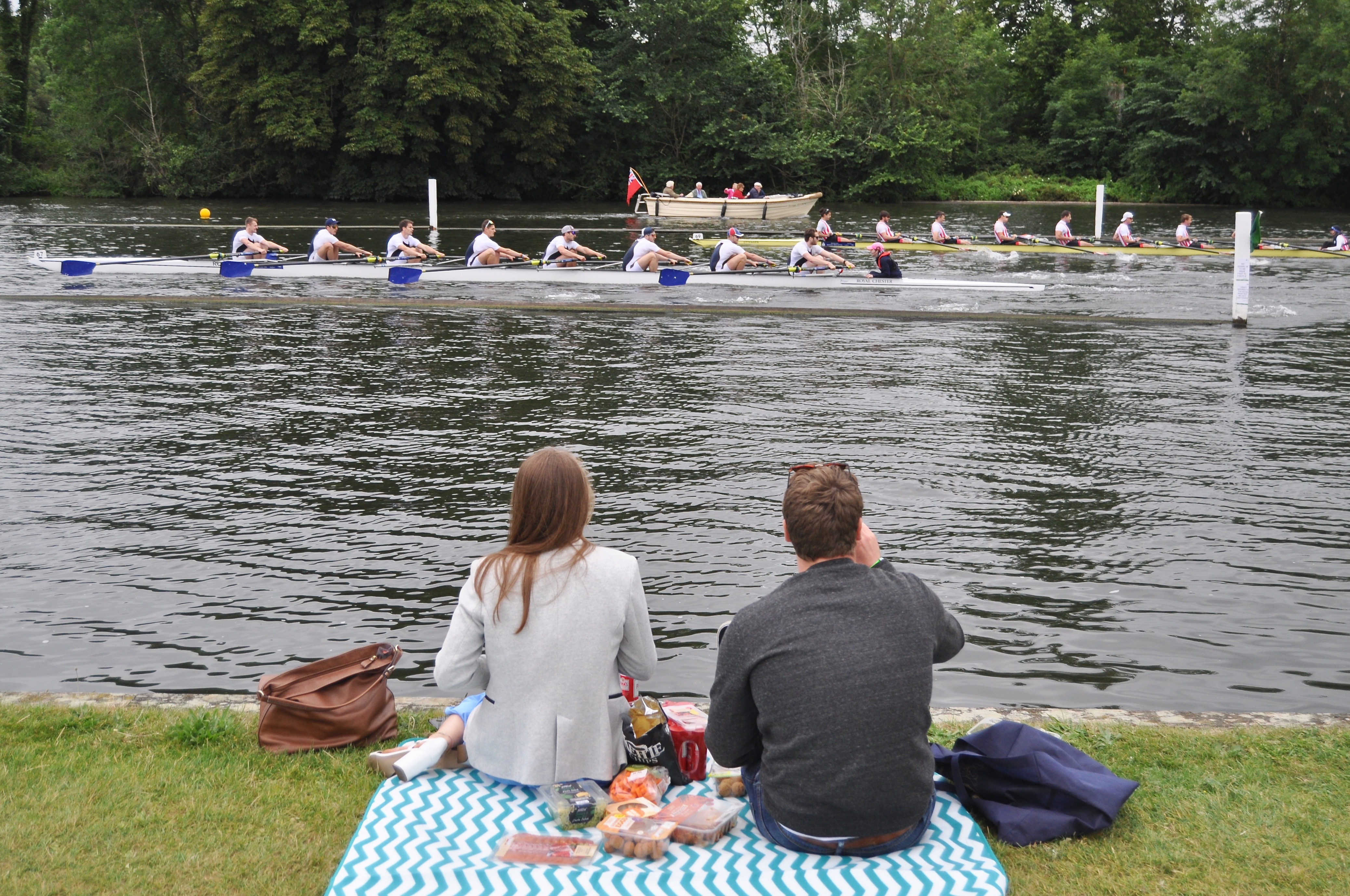 A picnic with passing entertainment. The selected German crew, R.C. Allemannia von 1866 (far side) raced and lost to Royal Chester ‘A’.If rowing 2,112 metres is not enough, try 3,000 miles. See headstogetherandrow.org.uk