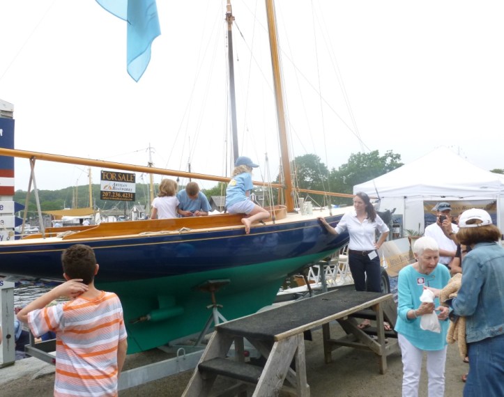 You could actually build a boat at the WoodenBoat Show.A beautifully restored Beetle catboat from 1988 could be yours for $11,000.This beauty was also for sale.Williams-Mystic had this Sea Scout Sloop for sale for only $1,979 – a steal.
