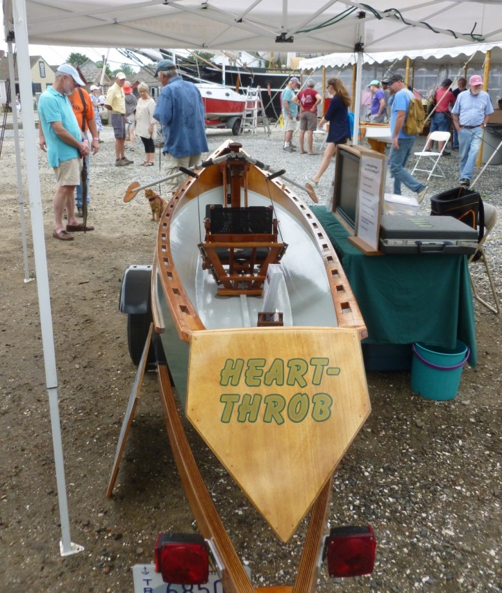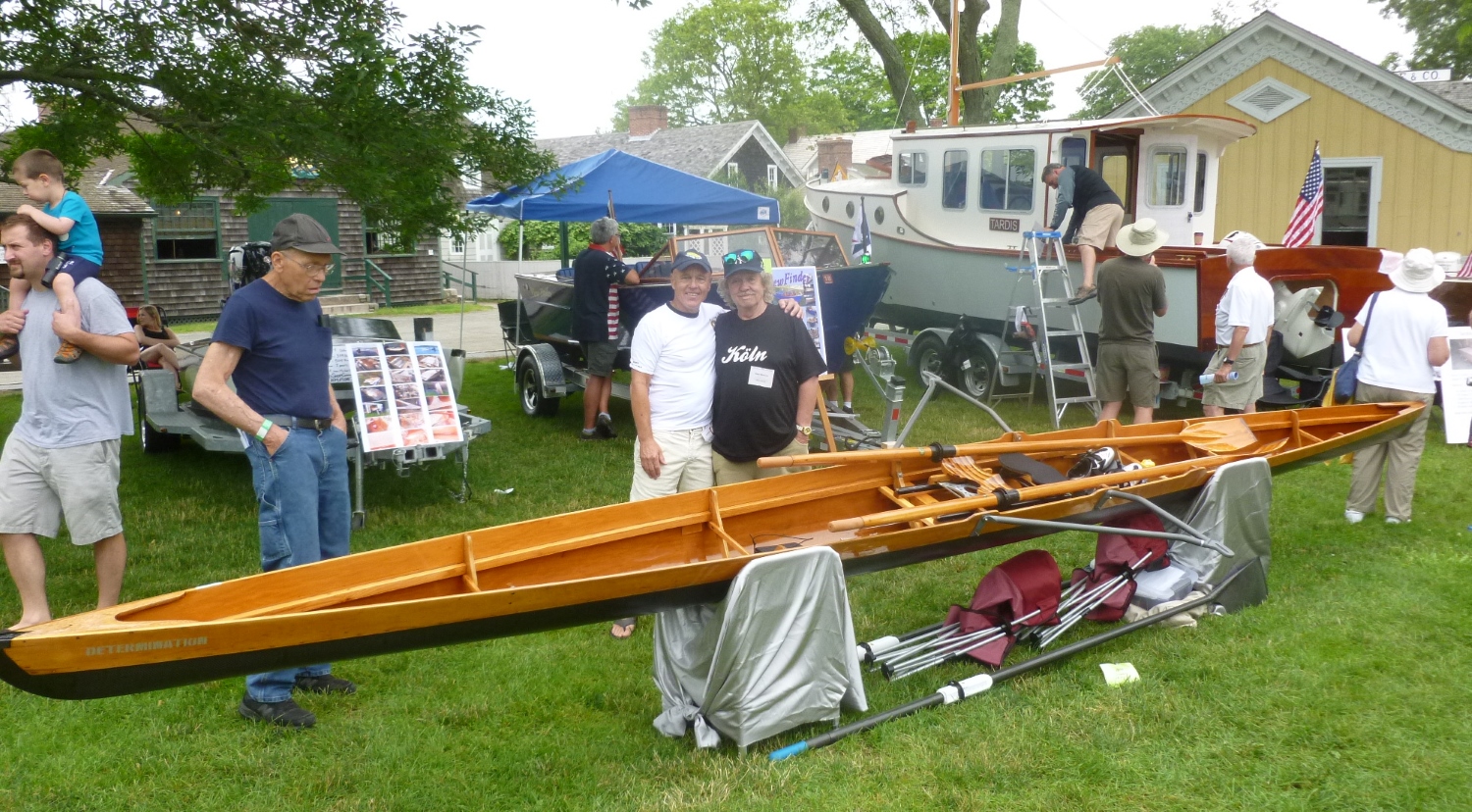 This Norwegian cutter, “Flekkerøy”, is probably the vessel that came furthest away of all of the visiting boats at this year’s WoodenBoat Show. She is a gaff-rigged pilot cutter, built in 1936 and named after the island where she originally worked. She was bought by Bjønar Berg in 2005, and after he and his partner, Klara Emmerfors, a boatbuilder, had sailed her in Scandinavian waters, they sailed from Frederikstad to USA, via the Shetland Islands, Faroe Islands, Iceland, Greenland and Canada.This boat has not travelled far to get to Mystic Seaport. Noank is a small village at the mouth of the Mystic River.Is “Duchess” aware that the World Rowing Championships is going to be held at Sarasota, Florida, in September?Yellow and blue – is there a Swedish connection here?Every real sailboat has to have a bowsprit.You might think that the camera angle makes this engine look ginormous, but the camera is not lying. This is a gargantuan engine for this small boat.Here is a Norwegian “færing” built in New York State.“Kaleidoscope” was built by Rocking the Boat, an organisation which was launched in 1996 as a volunteer project in an East Harlem junior high school. The programme now includes boat building, rowing, sailing, team building, environment and social work. Their slogan is ‘Kids don’t just build boats, boats build kids’. Take a look at: rockingtheboat.orgThe front-rower, “Heart-Throb”.Boat builder Will Aurigemma looked this happy when HTBS wanted to snap a picture of him and his beautiful skiff. More images of his boat and other pics on his Instagram account, Born2keel.Kai Stürmann (left) and his brother Claus were at this year’s festival to show off Kai’s newly restored training single scull, which was built by Joseph A. Garofalo of Worcester Oar and Paddle Company. An article about Kai, a HTBS reader, and his Garofalo single scull will follow on HTBS.