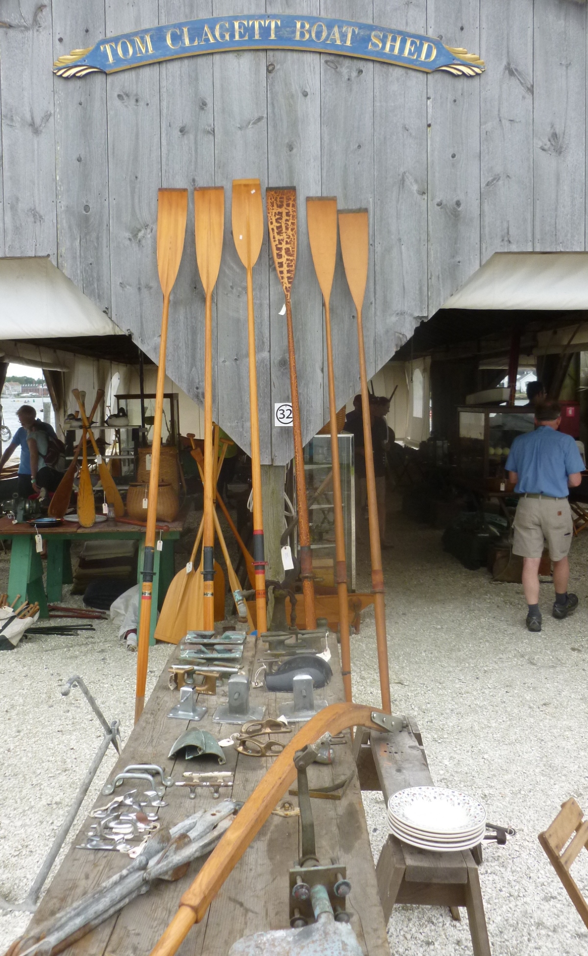 The more than 100 vendors that yearly come to the WoodenBoat Show, which is organised and arranged by WoodenBoat Publications in Maine and hosted by Mystic Seaport, are selling everything boat owners might need for their boats, whether it’s a dinghy or a superyacht. ‘Antique’ dealers and sellers of bric-a-brac – honestly, is there a difference, more than the prices? – are hawking out stuff to eager customers left and right. After having attended this show for close to ten years now, I have learned that you should walk around quickly the first hours to check out the merchandise at the different vendors, that way you might save hundreds of dollars.