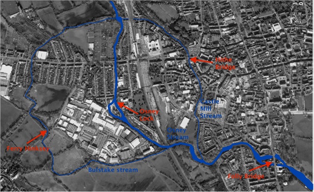 In the intervening 200 years, the stream at Ferry Hinksey (known variously as the Bulstake Stream, or the Pot Stream) has become a narrow, choked backwater. However for a long time it was the major of four streams comprising the Thames as it passed to the west of the town. This was so until the construction of Osney Lock in 1790, at which time Osney Stream became the major stream. (See Figure 2). Allowing for a degree of artistic licence, in 1814 it probably would have appeared rather as in the painting.