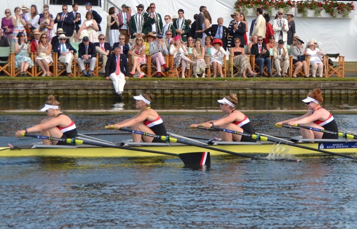 While the 168th Henley Royal Regatta may have appeared to be an Edwardian Garden Party, it took place in the age of the Internet and of the World Wide Web’s illegitimate and wayward children, YouTube, Twitter, Instagram, Snapchat et al. Because of these, the results of the finals day racing on Sunday, 2 July were known around the world as soon as the bow of each winning boat had covered its allocated 2,112 metres. Thus, I make no apology for producing my two-part report on Henley Sunday several days after the event. Hear The Boat Sing is not a results service, and my aim in covering an event like Henley in words and pictures is not only to lightly comment on the rowing, but to also try and convey the atmosphere of the occasion, to seek out the historical and the quirky, and to find that which appeals to ‘HTBS Types’. While this is a self-imposed (and enjoyable) duty, I also take time out to enjoy the social aspects of the five-day gathering of the rowing fraternity, so not all races are covered equally and my reporting standards often drop after a good lunch.