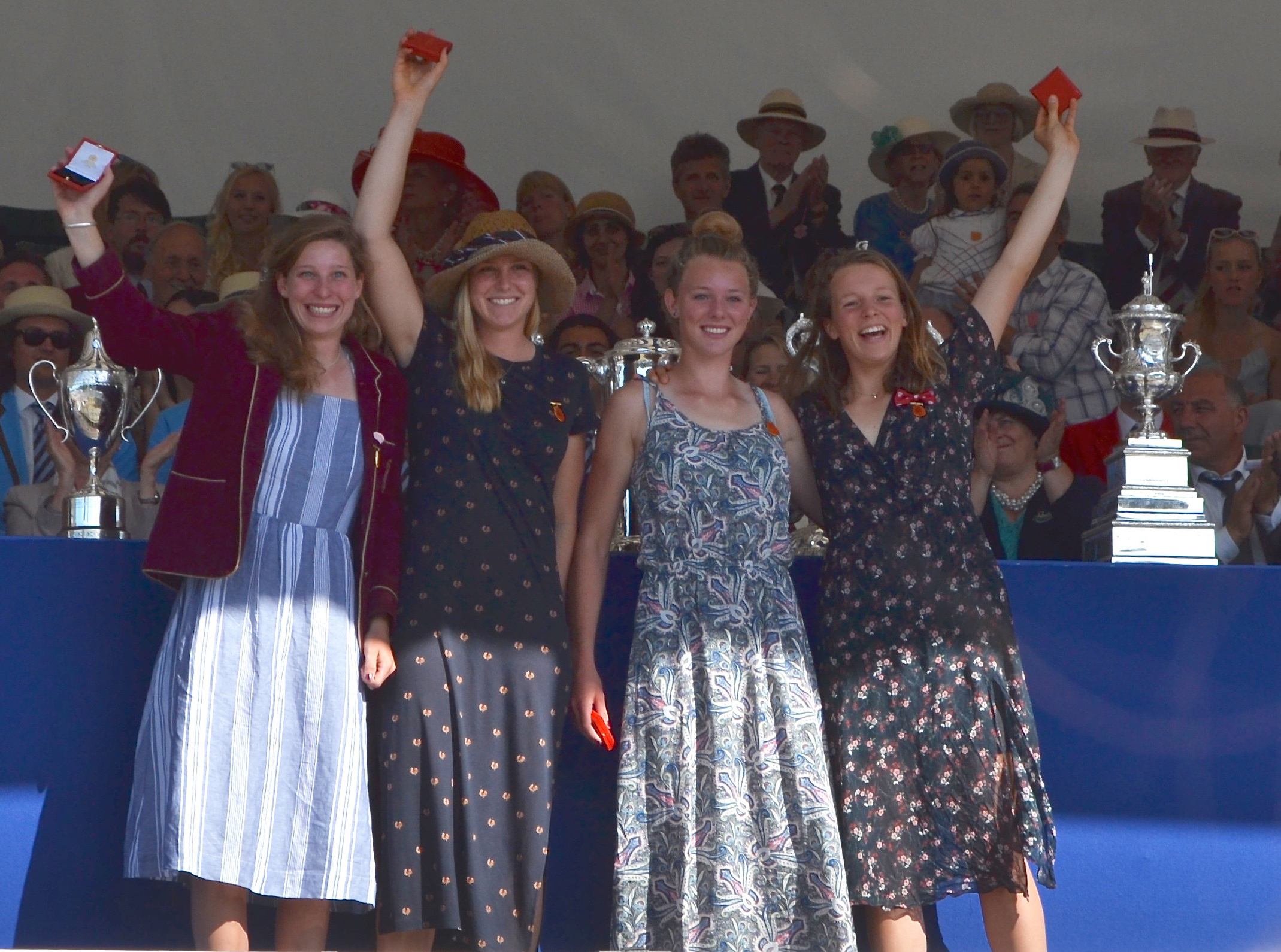 While the 168th Henley Royal Regatta may have appeared to be an Edwardian Garden Party, it took place in the age of the Internet and of the World Wide Web’s illegitimate and wayward children, YouTube, Twitter, Instagram, Snapchat et al. Because of these, the results of the finals day racing on Sunday, 2 July were known around the world as soon as the bow of each winning boat had covered its allocated 2,112 metres. Thus, I make no apology for producing my two-part report on Henley Sunday several days after the event. Hear The Boat Sing is not a results service, and my aim in covering an event like Henley in words and pictures is not only to lightly comment on the rowing, but to also try and convey the atmosphere of the occasion, to seek out the historical and the quirky, and to find that which appeals to ‘HTBS Types’. While this is a self-imposed (and enjoyable) duty, I also take time out to enjoy the social aspects of the five-day gathering of the rowing fraternity, so not all races are covered equally and my reporting standards often drop after a good lunch.