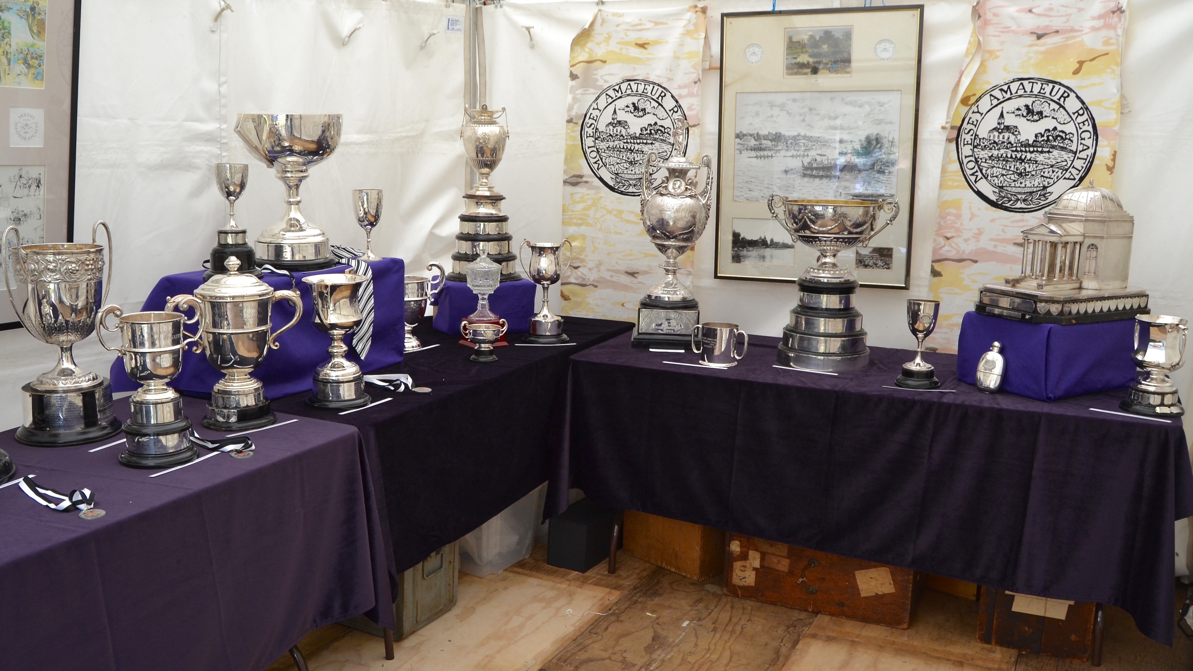 Ephemeral posters aside, the most obvious, tangible and long-lasting reminders of Molesey’s glorious past is their collection of very impressive solid silver trophies which are still lovingly produced for display and presentation every year.