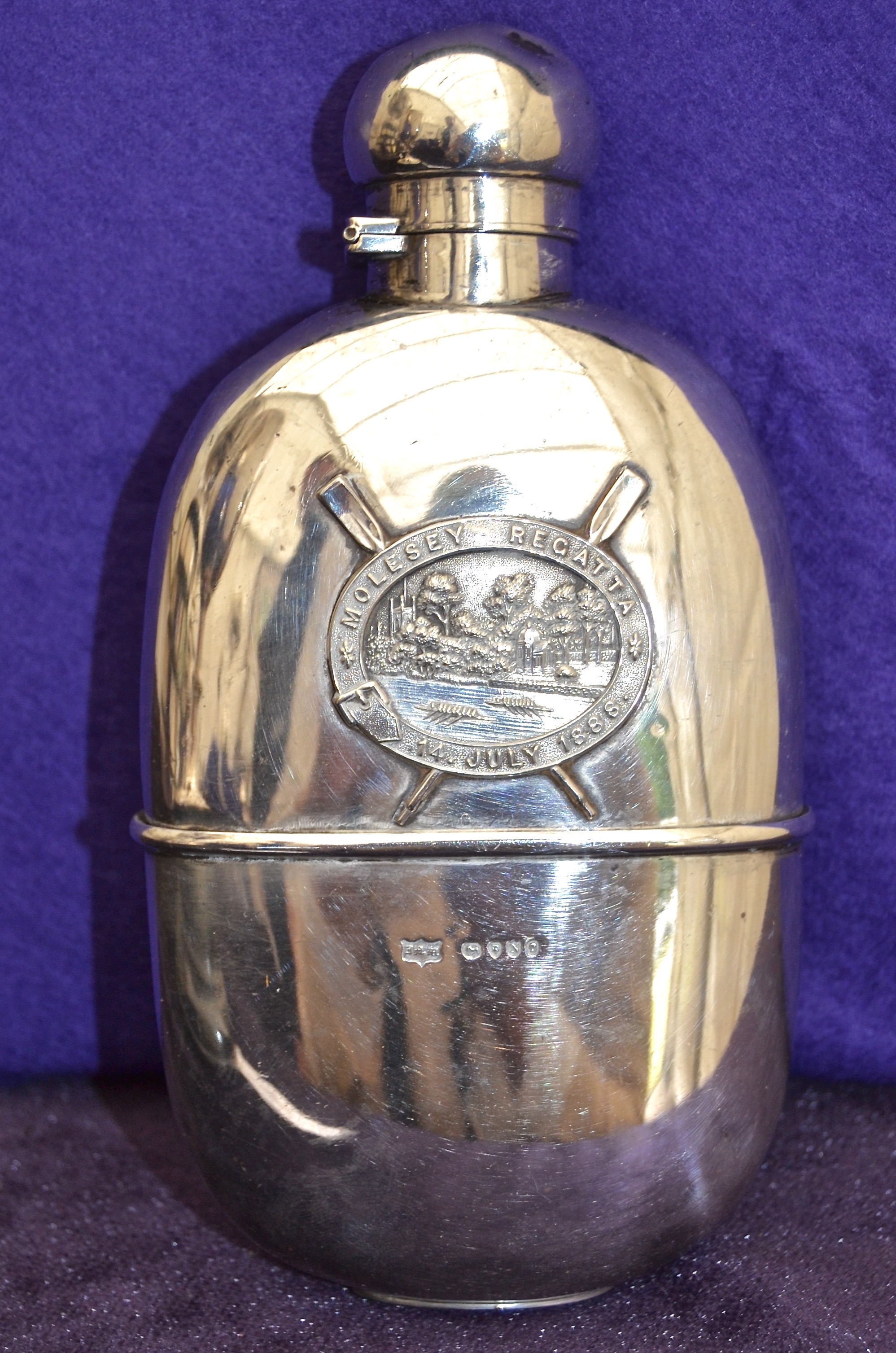 This hip flask was won in 1888, an example of the quality of prizes that were once presented by the regatta. It may have been handy for holding a mix of brandy and port; some Victorian oarsmen liked a nip of this on the start to ‘settle the stomach’.