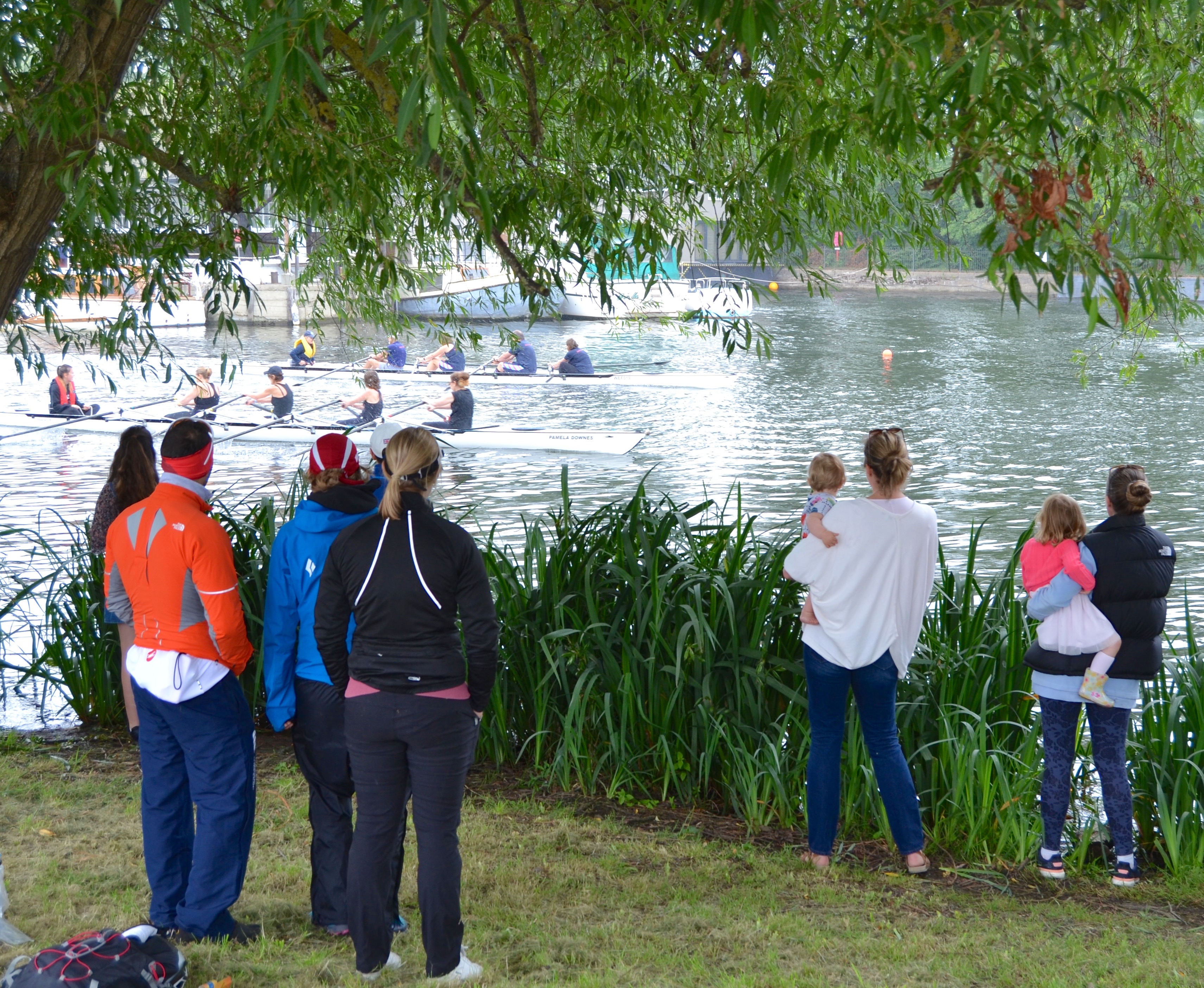 The same scene as in the 1905 picture on regatta day, 2017. Admittedly, the races are now held upstream of this point, but, even if they were not, the supporters would still be a fraction of the number present 112 years earlier.