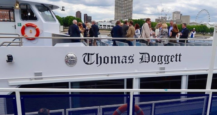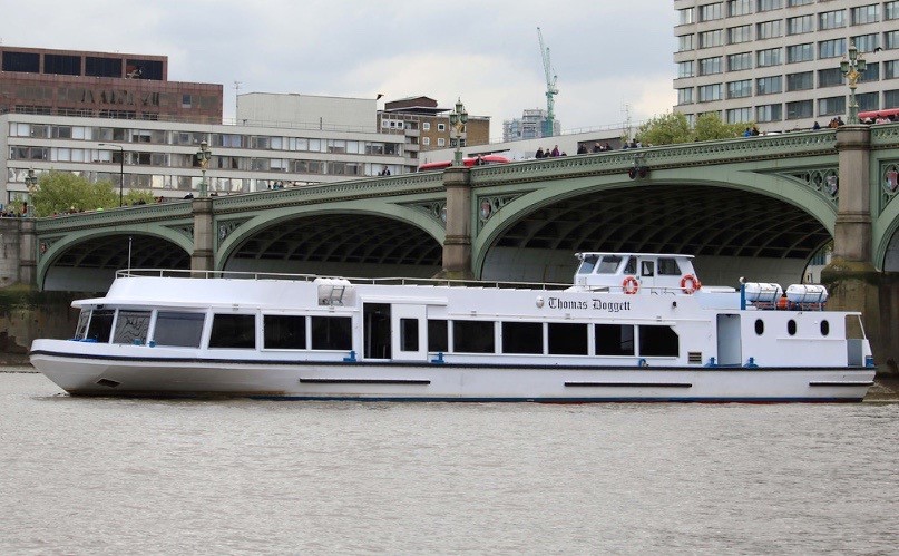 The £2.5 million MV Thomas Doggett was launched on 14 July by the Lord Mayor of London, Andrew Parmley, ‘to cope with the burgeoning demand for river trips’ and ‘named in memory of the founder of the Doggett’s Coat and Badge Wager’. Completed in The Netherlands last year, it has been built for sightseeing and can carry up to 528 passengers across two decks. The vessel will operate as part of the Thames River Services fleet calling at Westminster, St. Katharine’s and Greenwich Piers.