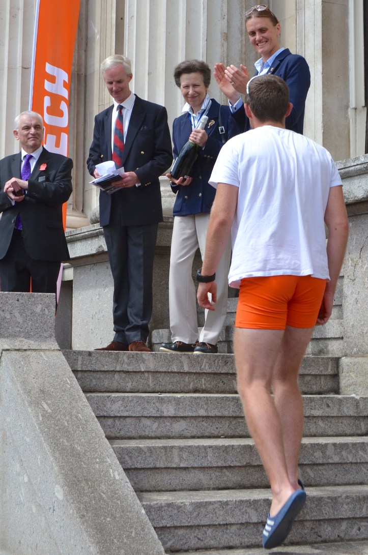 Father Thames was in his best mood for the 2017 Doggett’s Coat and Badge Race, with all-but perfect conditions as the latest instalment of an ancient contest took to an even more ancient waterway. Under the fizz-fuelled eyes of a couple of hundred spectators, Olympic champion Heather Stanning and HRH the Princess Royal, newcomer and Tideway Scullers’ lightweight Jack Keech won the Doggett’s at the first time of asking, with a soaring performance which easily outclassed the other competitors.