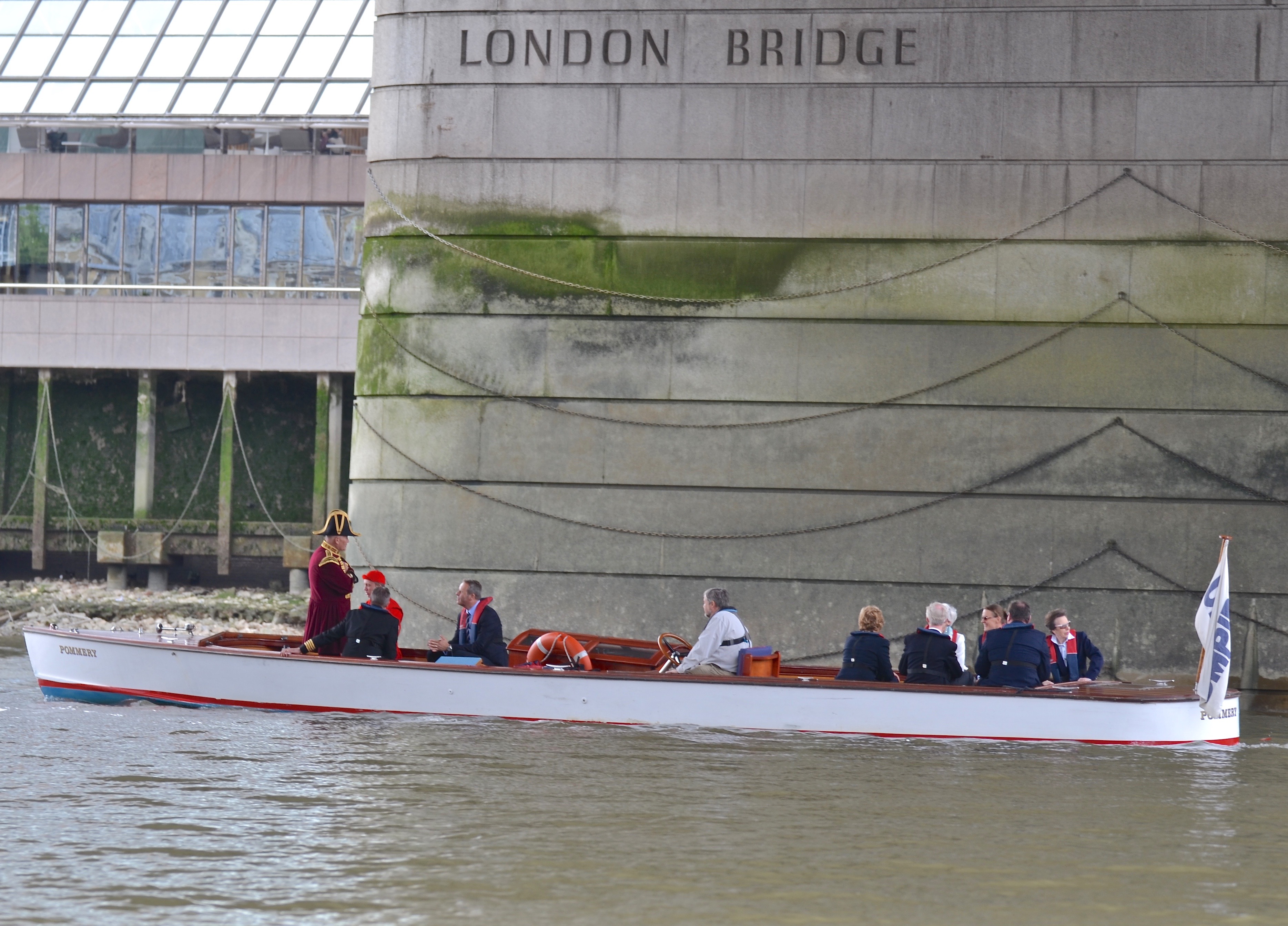 On board the umpire’s launch were dignitaries including Guest of Honour Major Heather Stanning OBE and the Fishmongers’ current Prime Warden Princess Anne. Also watching the scullers, including his young second cousin George, was the newly elected Waterman’s Company and 1984 Doggett’s winner, Simon McCarthy, whose son Harry won three years ago. The race was filmed, partly for live streaming but also because snippets will be used in a BBC2 documentary on rowing and watermen to be screened sometime in the autumn.