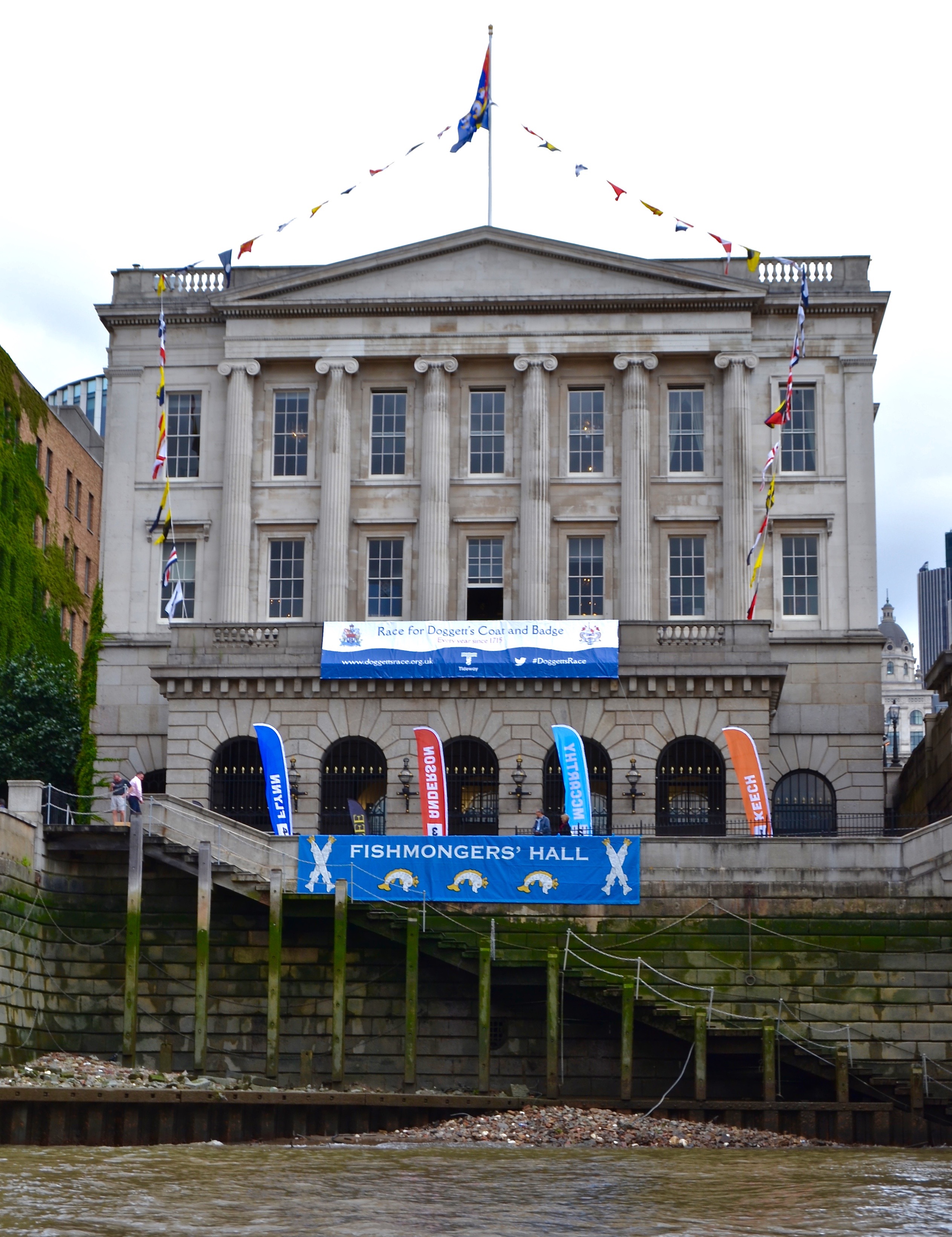 Amusingly, the recent anniversaries have thrown into apparent confusion which number each Doggett’s wager should be given. The first race of the series was held in 1714 on the accession of Hanoverian monarch George I, but of course that was not yet called a Doggett’s Wager so does not count. The first of the Doggett’s races was held in 1715 at the instigation of Thomas Doggett, who had founded the original, and they have continued annually in an unbroken line ever since. However this means that the 300th anniversary race, held in 2015, although technically the 302nd contest, was by name the 301st Doggett’s race and so the 2017 race was in fact the 303rd Doggett’s Coat & Badge Wager.