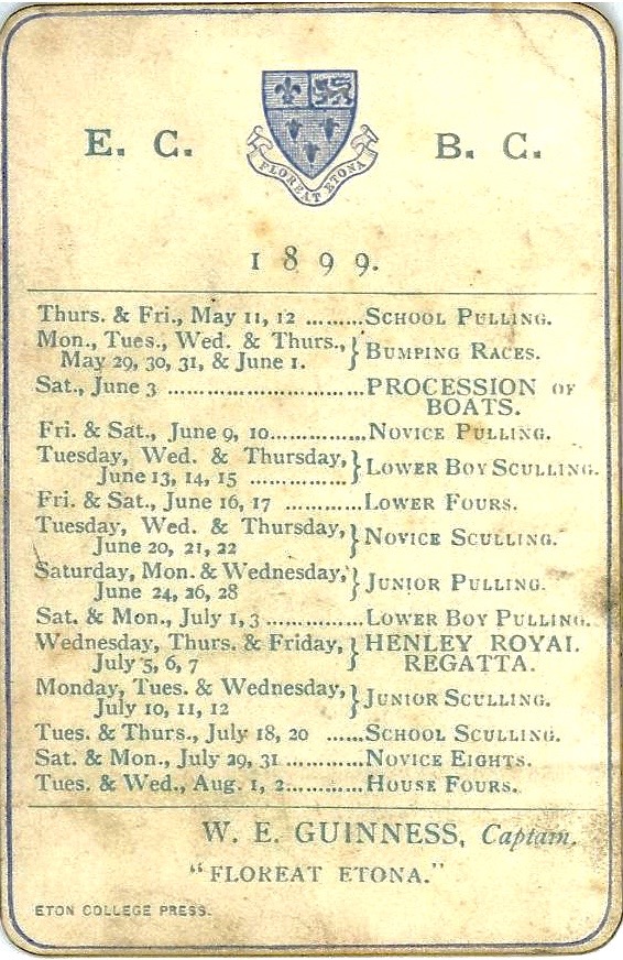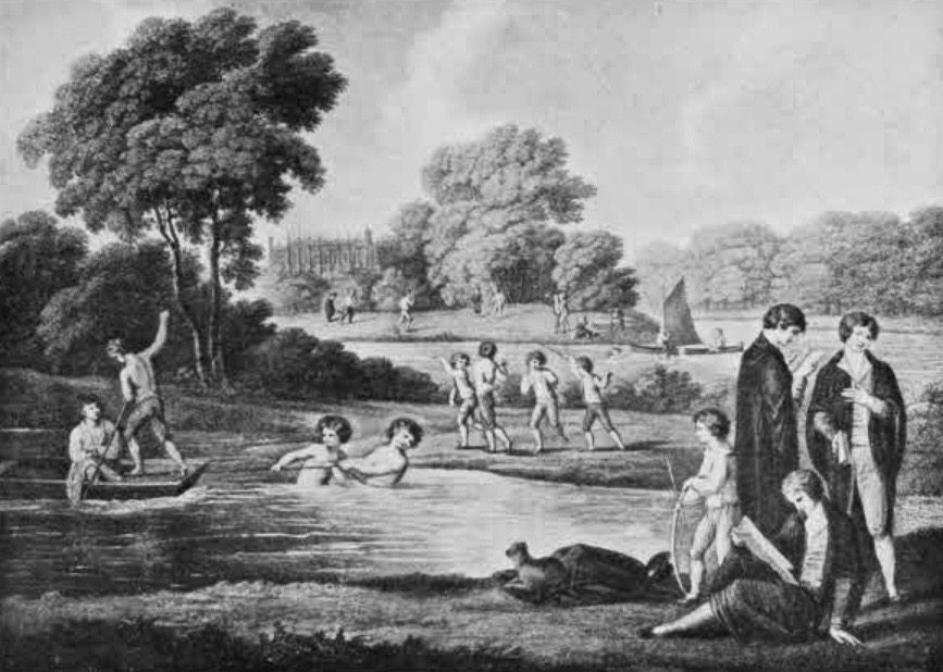 However, rowing historian Bill O’Chee informs me that the ‘sprightly races’ actually refer to swimming contests. He holds that ‘boating came late to Eton, having been preceded as a pastime by swimming’.