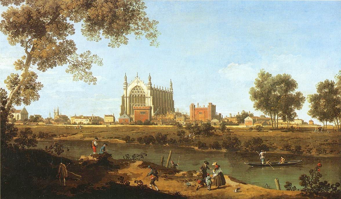 In 1742, Old Etonian, Thomas Gray (1716 – 1771), wrote “An Ode on a Distant Prospect of Eton College”. This is not as well-known as his later “Elegy in a Country Churchyard”, but some think that the earlier work has been unjustly overlooked. The Eton poem splits into two even parts, with the first half concentrating on the past and the present, with the boys at school devoting all their energies to play and to study and not thinking of the future. In my recent piece on Eton’s Procession of Boats, I suggested that the poem included a very early reference to boat racing (‘Margent’ is an edge or bank):