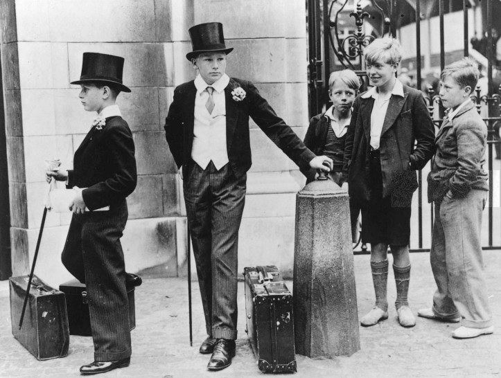 ‘Iconic’ is an overused adjective but this picture of five British schoolboys, taken in the summer of 1937, most defiantly qualifies. Its connection with Eton is indirect – but relevant. Soon after it was first published, the two boys on the left were incorrectly identified as Etonians, and this mistake has often been repeated. In fact, the two ‘posh boys’ were from Harrow School (they had just left the annual Eton – Harrow Cricket Match at Lord’s Cricket Ground). Perhaps the repetition of the error has, in some cases, been willful. Ever since its publication, the photograph has been frequently reproduced as ‘the defining image of class division’, and, of all the alleged villains who apparently perpetuate this inequality, Eton ranks very high, even above the other British public (i.e private) schools. However, like many ‘iconic photographs’ where real people are used as symbols, the facts reveal a twist.