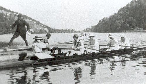 A woman coxing a men’s crew is nothing new in Poona. Picture: “The Graphic” 6 October 1877.