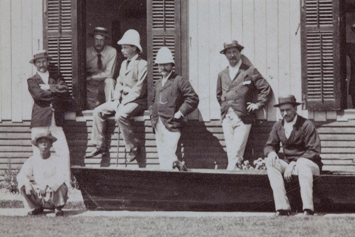This picture from c.1875 – 1880 is in Bristol University’s online Historical Photographs of China Collection, reproduced under Commons Creative Licence, © Helen Dhoot. The caption says: ‘The building is the Upper Boat House, on Markham Road… beside Suzhou Creek. It was built c.1875-76. Quoits, croquet and tennis were played on the lawn there’.