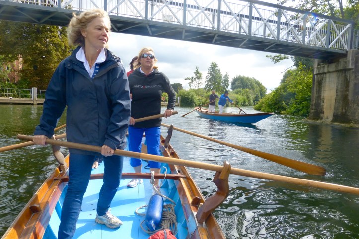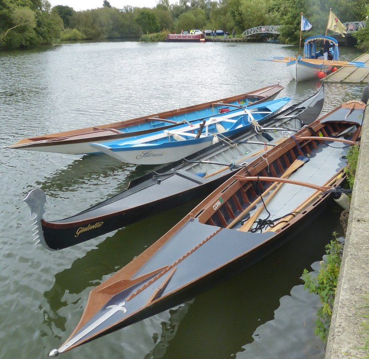 On the day I visited, City Barge was playing host to 30 visitors from Settemari la Remiera di Cannaregio dal 1977, a classic Venetian rowing club from Cannaregio, the northernmost of the six historic districts of Venice. The Italians spent the morning sightseeing in Oxford, so City Barge members took the shallop and some Venetian boats past Boathouse Island, under Folly Bridge, and headed upstream. On the outward journey, I was perched on the bows of a sandolo, trying not to upset the balance, but on the return trip, I had a more comfortable ride in the shallop.