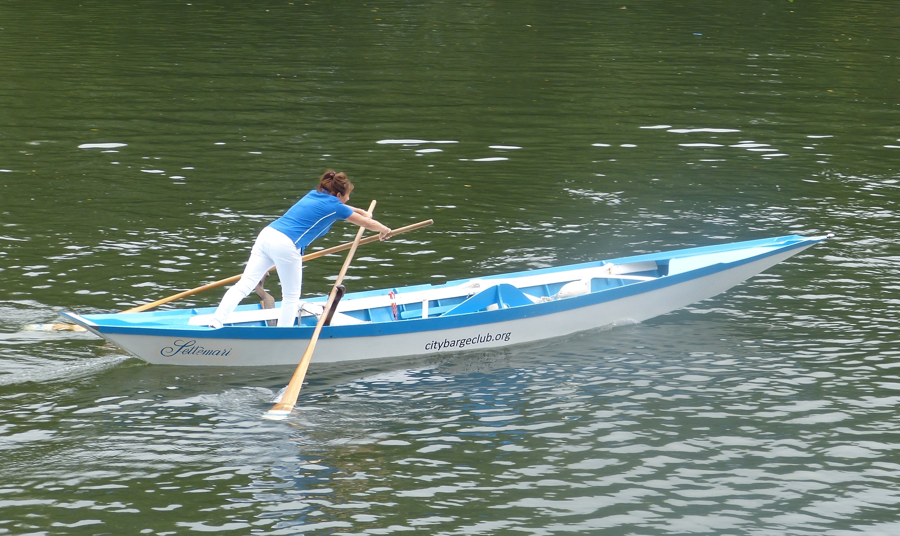 Ashley Clarke, an 8-metre sandolo in which most City Barge members learn to row Venetian style.